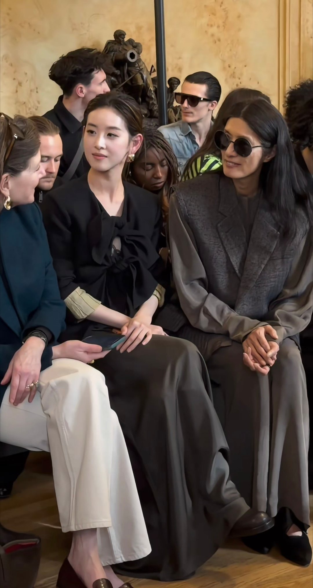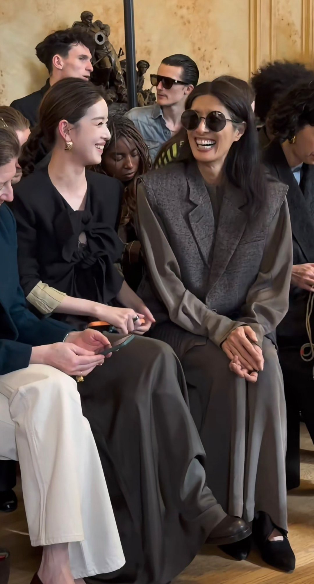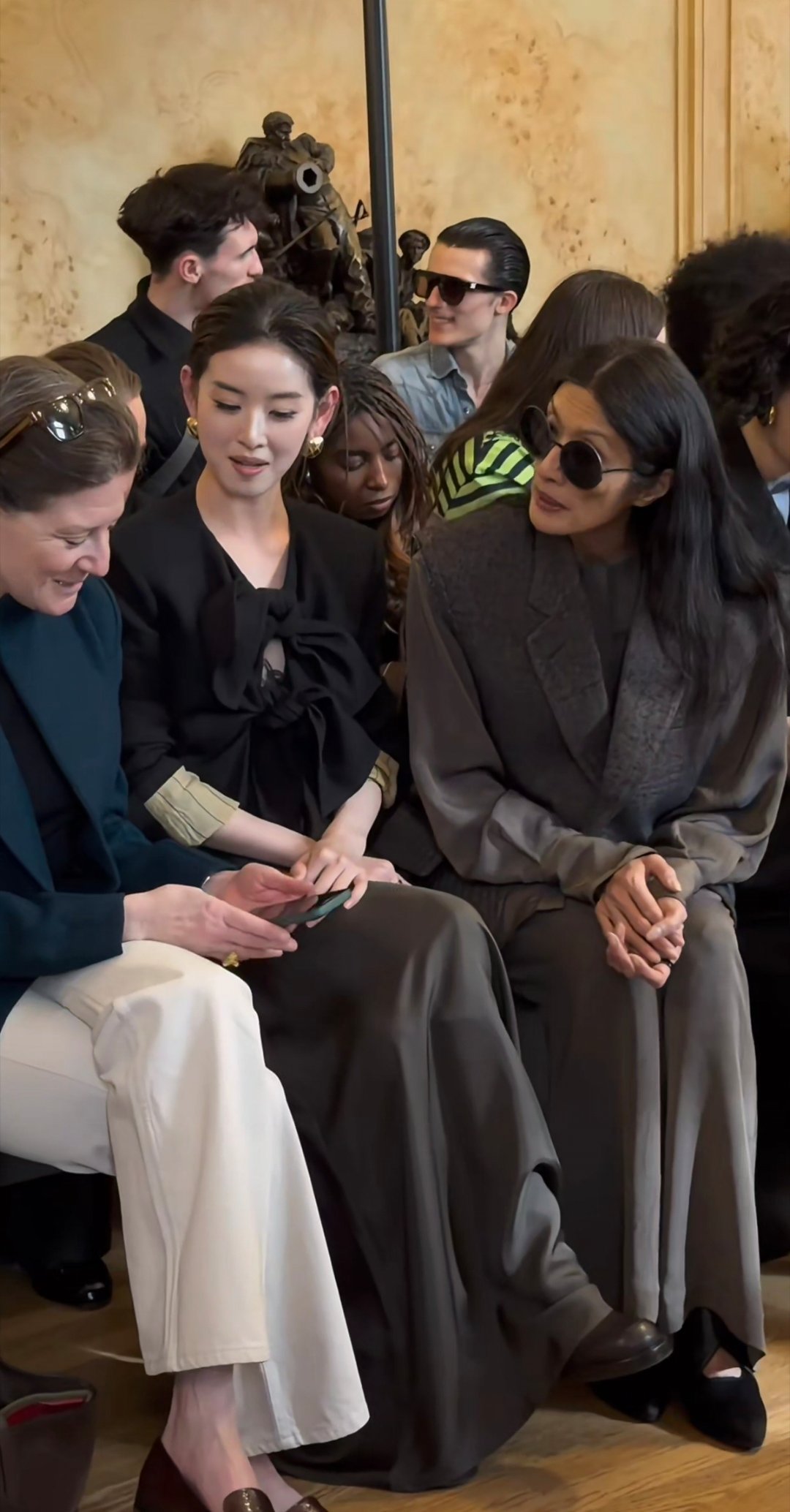 章泽天一身优雅穿搭亮相巴黎看秀,和外国友人热聊,笑的很开心。
