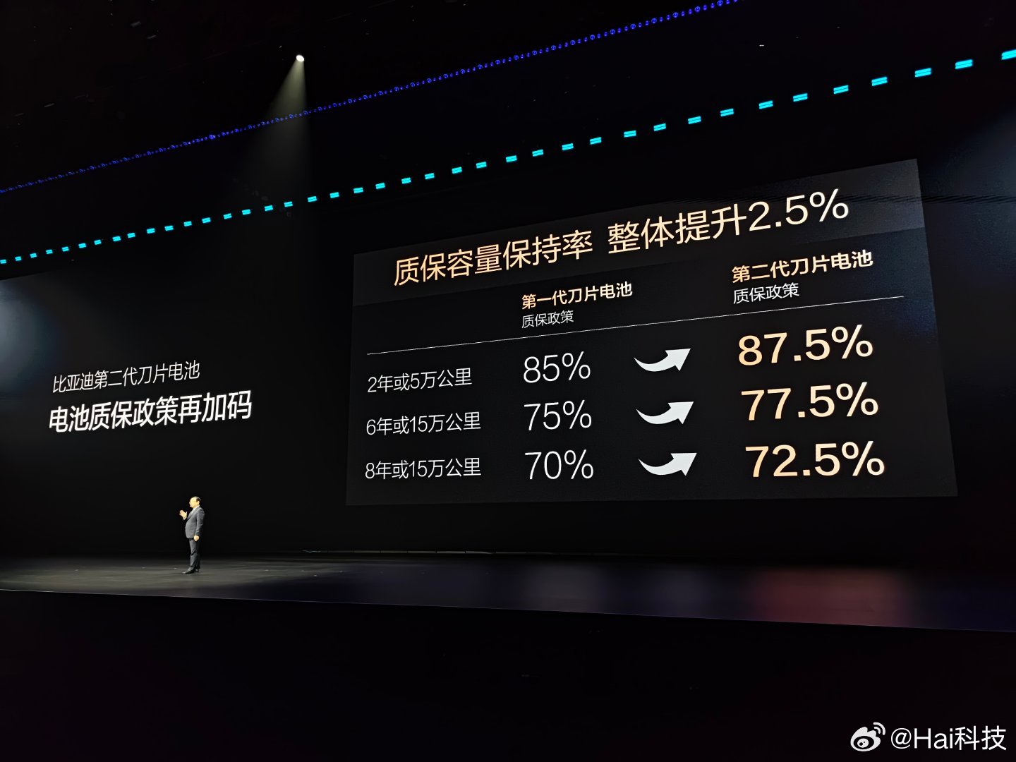 没有人会比比亚迪更懂电池,比亚迪第二代刀片电池的底气拉满了,质保容量保持率再提升2.5%,消费者可以放心开!!!比亚迪今晚发布二代刀片及闪充比亚迪二代刀片电池质保加码 比亚迪第二代刀片电池5分钟充好