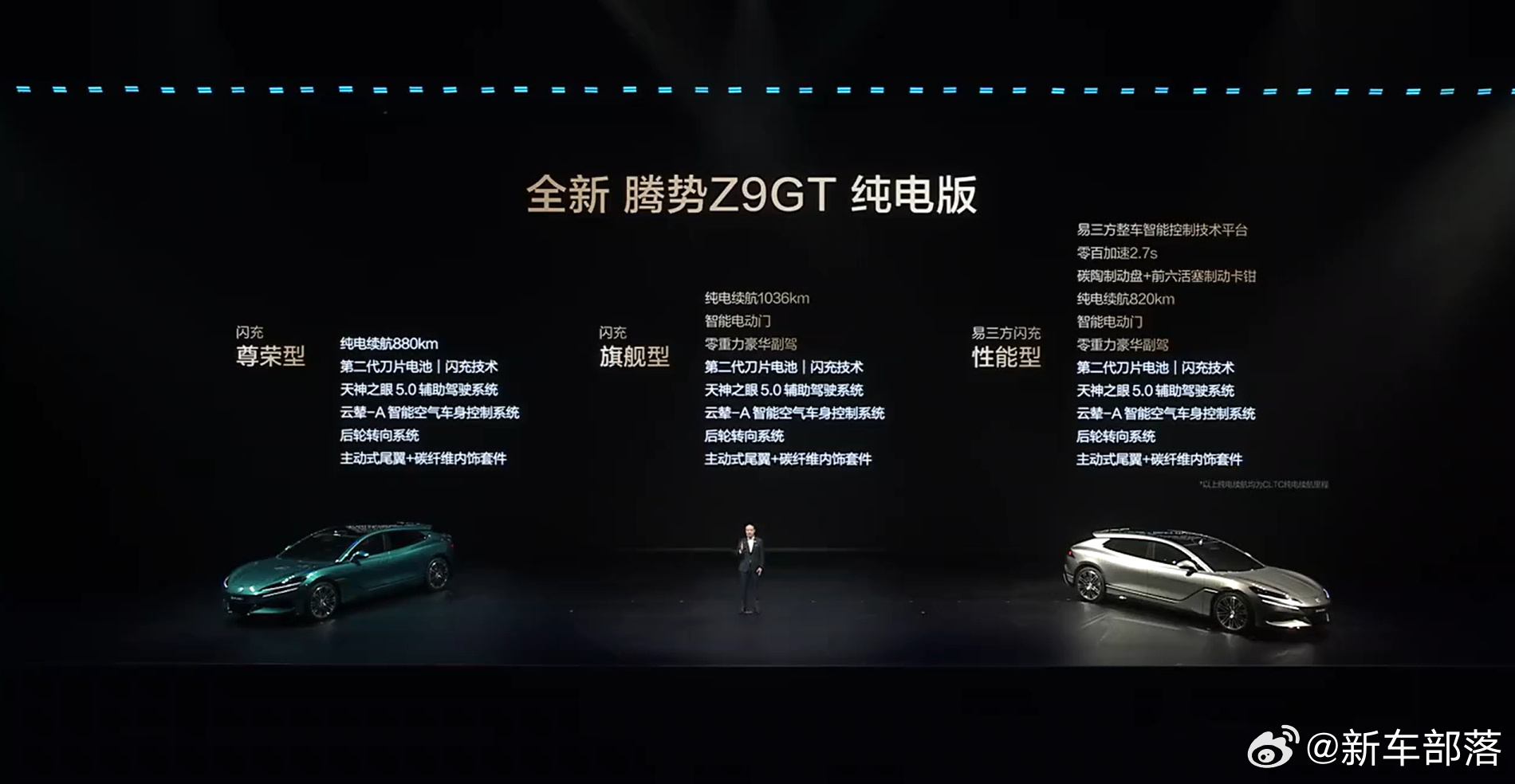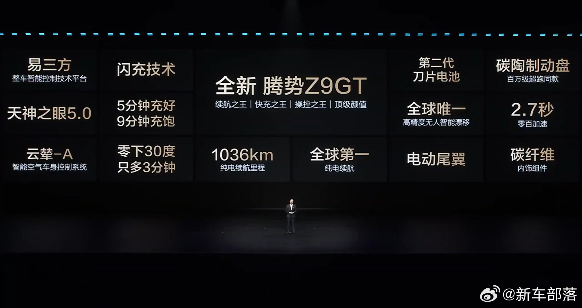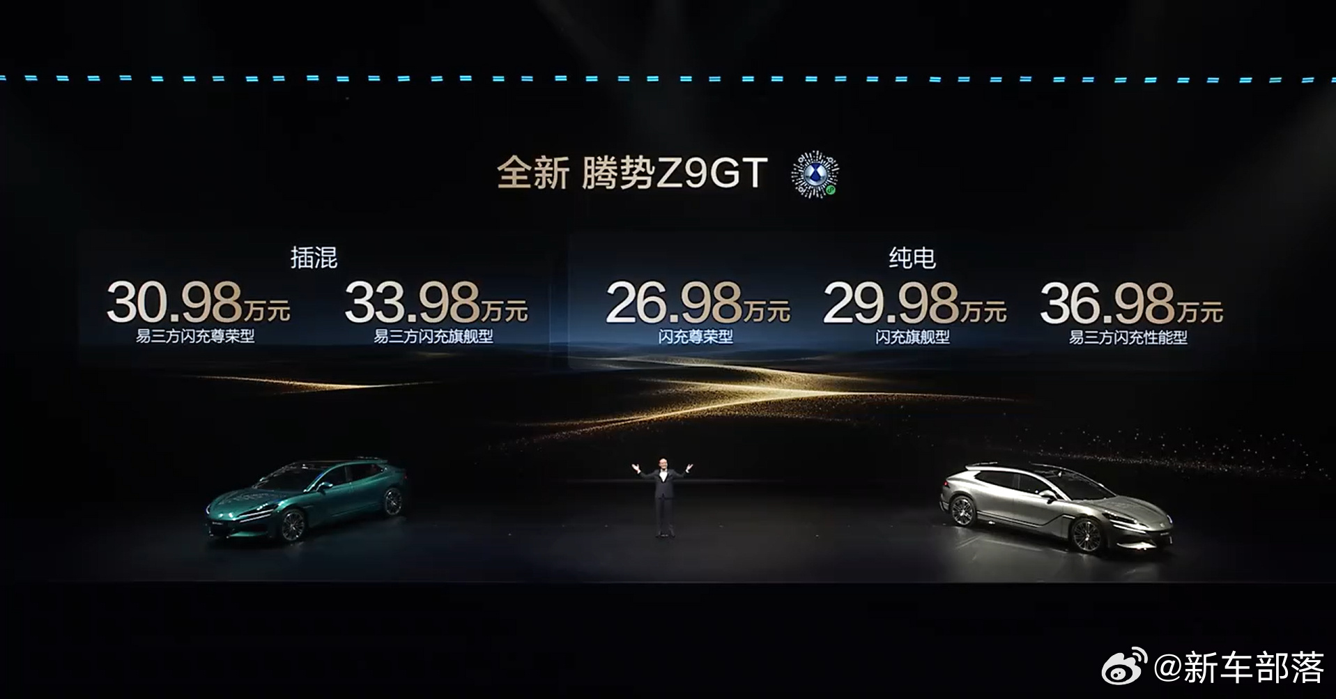 腾势Z9GT充电9分钟续航超千公里 全新腾势Z9GT正式上市,26.98万起,把千公里续航+闪充带进豪华GT。