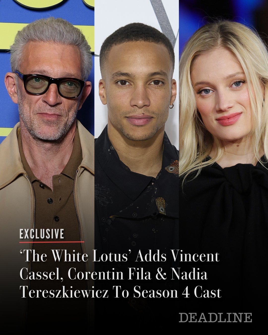 白莲花度假村第四季主演根据Deadline消息,HBO热剧《白莲花度假村4》确认新卡司加盟,法国演员文森特·卡塞尔、柯朗坦·菲拉、娜迪亚·特列什科维奇确定出演该片。《白莲花度假村》第四季已确定在法国取景拍摄,目前仍在筹备中。