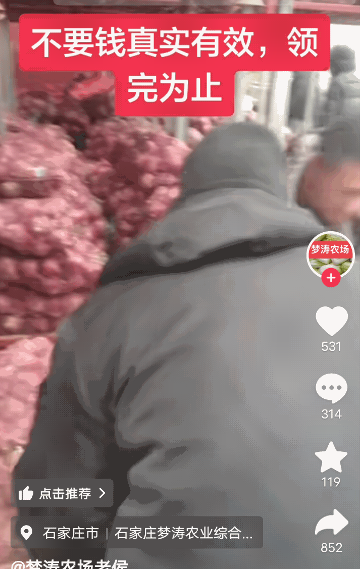 【免费!免费送洋葱!】重要的事情说三遍!免费送洋葱!不限数量!视频博主说,不要钱,随便拉!免费送洋葱!看着视频上,栾城冷库里有序堆放着,许多的层层叠叠的洋葱,都用红皮麻袋装好了! 还有这好事!不少呢,太多了,卖不出去了吗?还是发芽了,就不好卖了?还是给冷库腾挪地方?看着开车去拉洋葱的人还不少,装的满满当当的。还和老板对话,真实有效! 老板是啥意思?感觉是个做实体的老板,应该不是为了流量!位置在石家庄栾城的梦涛农场!有网友说,事情都是真的,确实是免费送!不过活动了两天,今天好像是已经结束了! 晒图笔记大赛 信息图片来源网络侵权联删