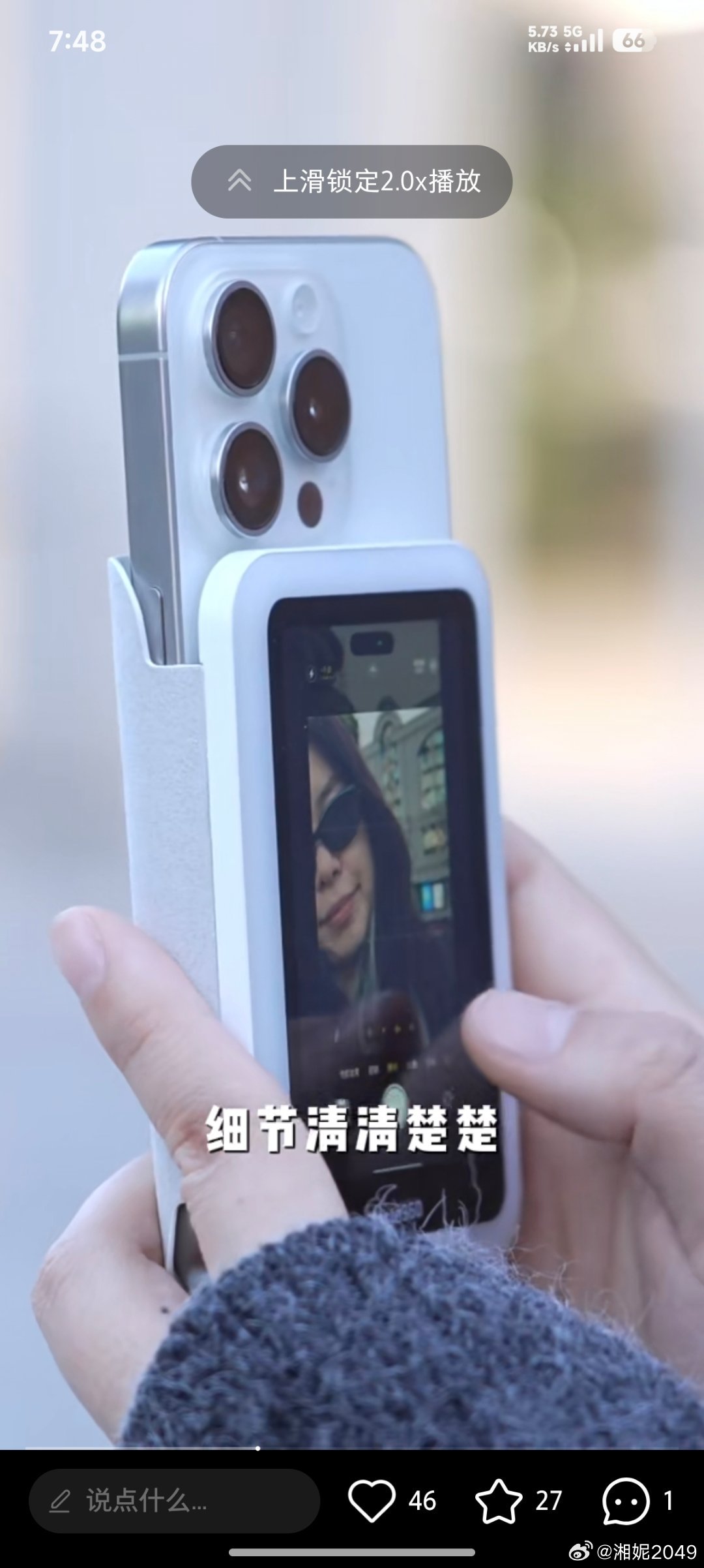 而且很重要的一点就是,手臂伸直自拍时,即便是使用前置其实都没那么好按快门键的,再加上这么个小玩意,拿不拿得稳也是衡量体验感好不好很重要的一个纬度。