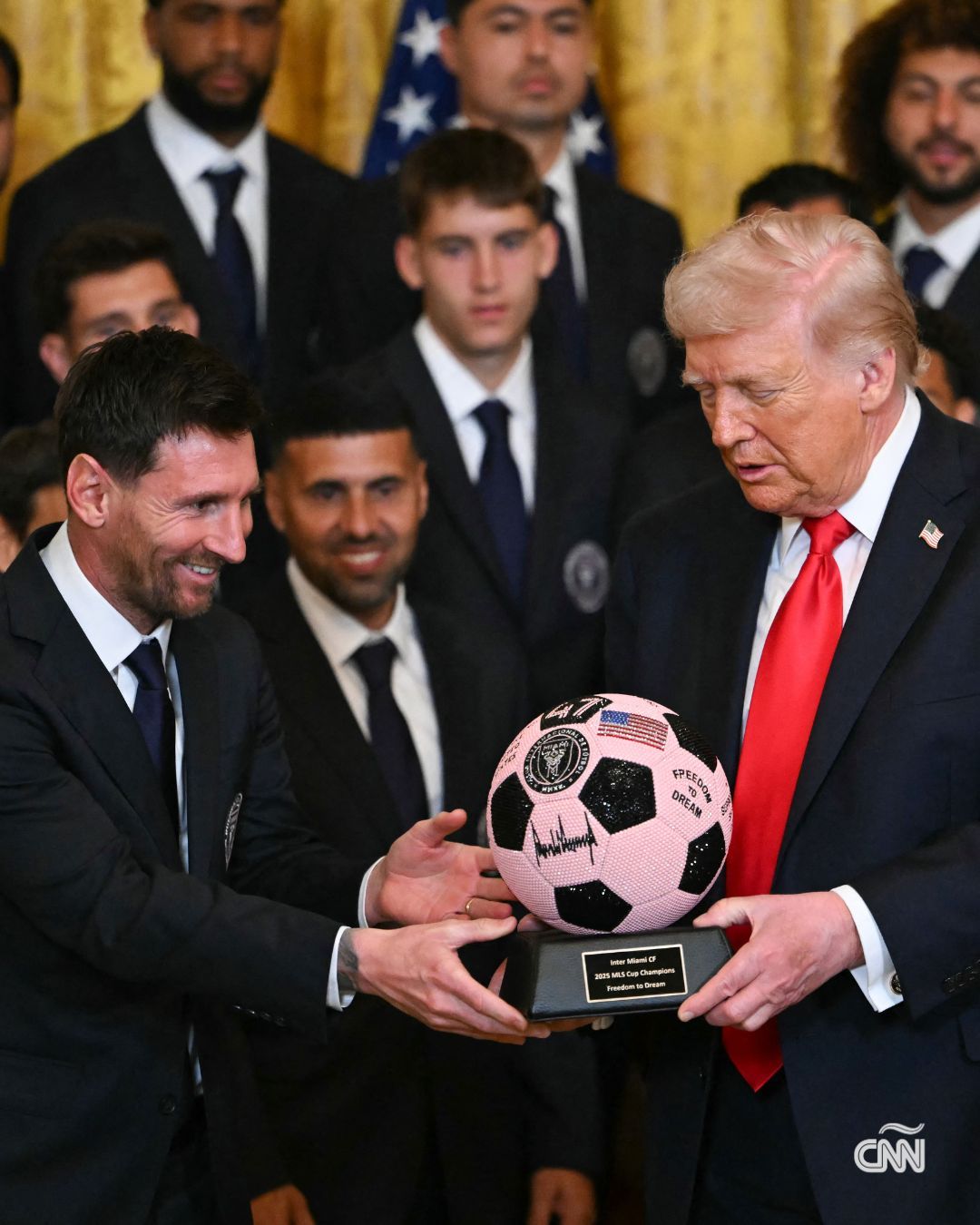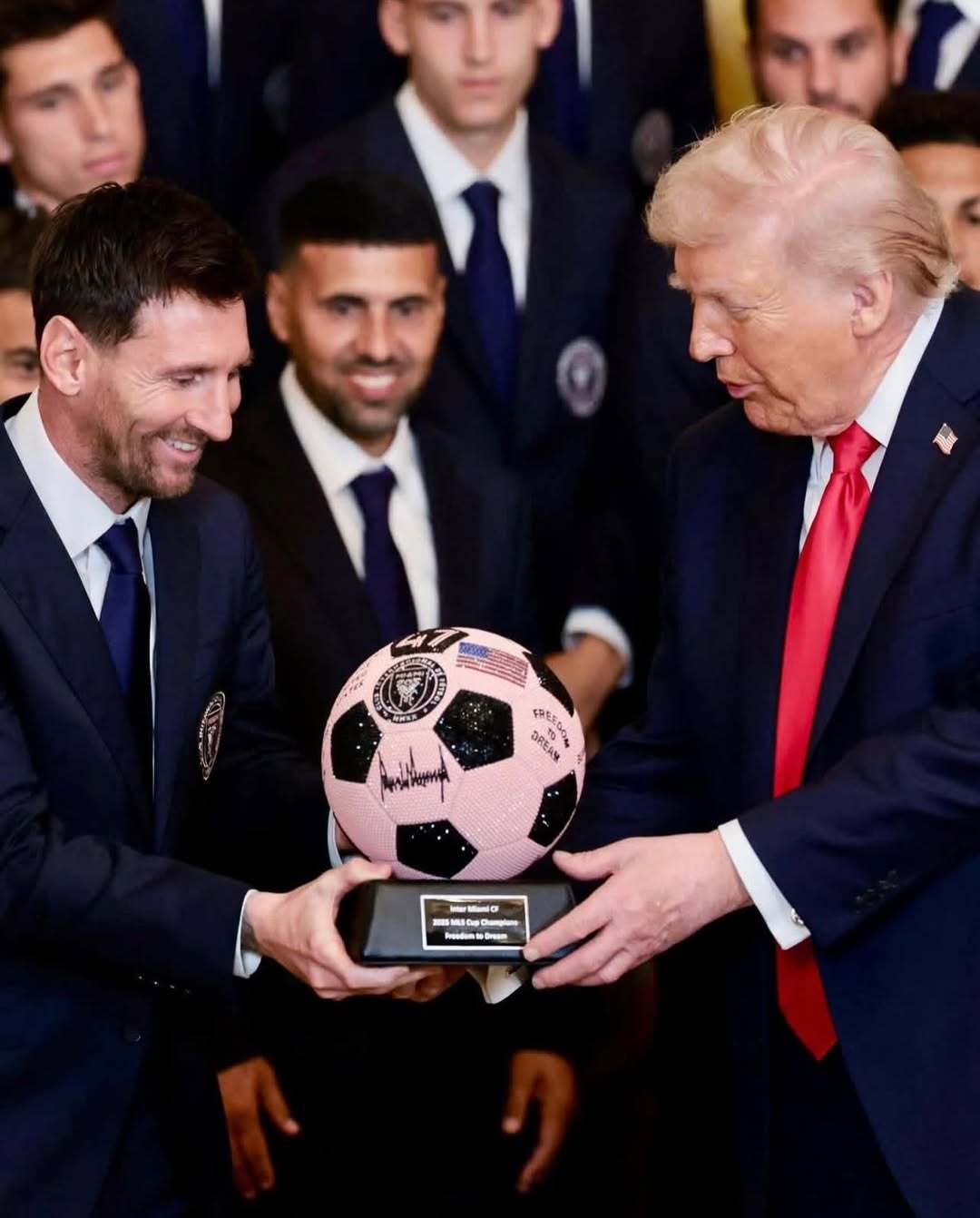梅西随队造访白宫接受美国联盟冠军表彰的照片part2🏆🥇特朗普赠送其粉色纪念
