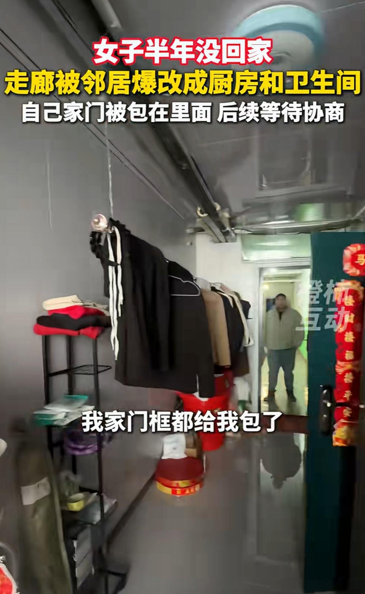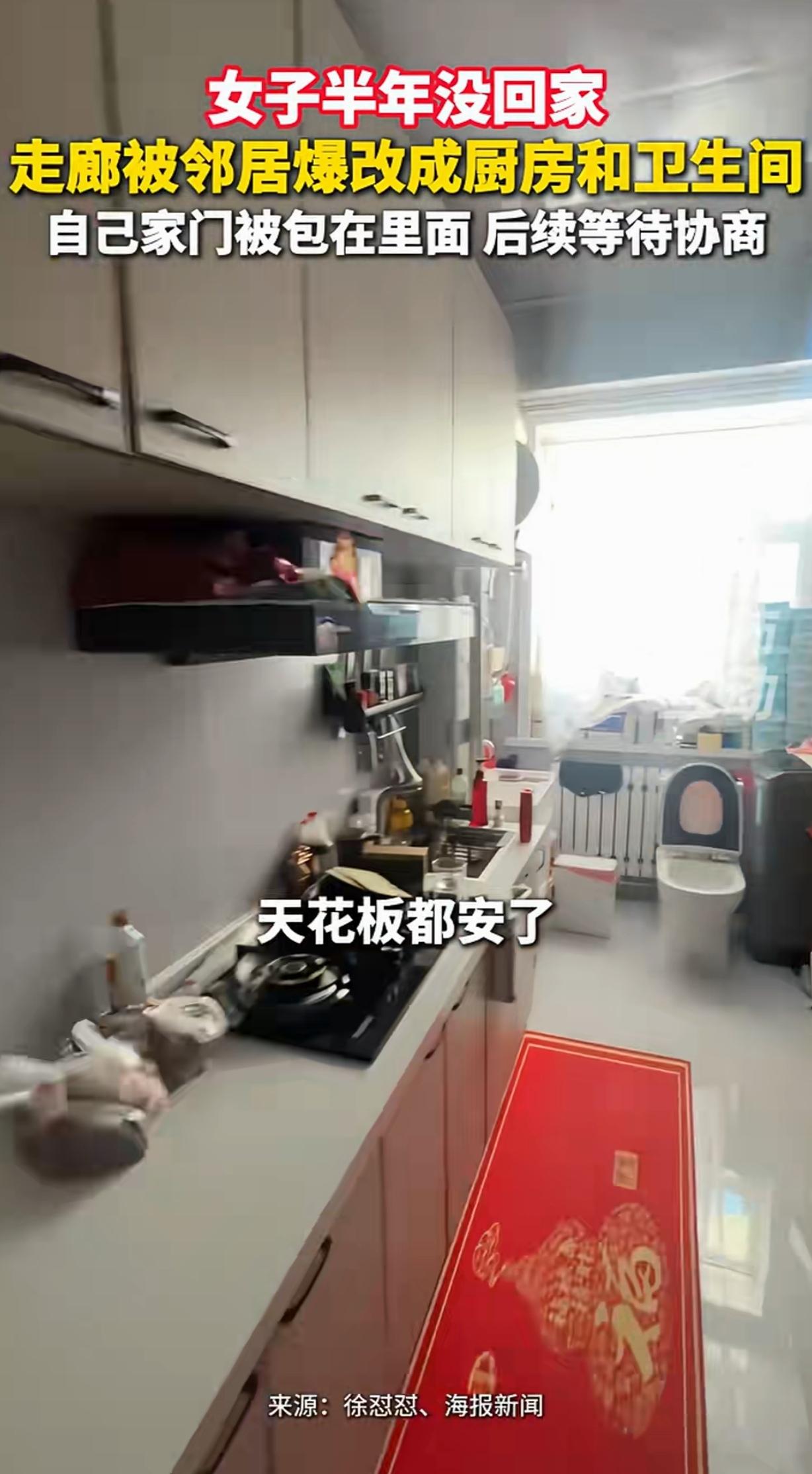 “奇葩到家了!”内蒙古,一女子6个月没回家,回家一看懵圈了,对门邻居竟把走廊,爆改成厨房和卫生间,把水泥地都铺上了瓷砖,天花板都安了,还把她家入户门包在里面,让她差点没找到家门,公共区域,一声没坑就变成他家的了,真是一点脸都不要呀!网友:厨房我能理解,马桶过分了,你再有半年不住,直接把你家也占了。 一位女子因为一些原因,有6个月没回家,房子空了半年没住人。 等她归心似箭回到家,却被眼前的一幕弄得彻底懵圈。 女子家所在的楼是老公寓楼,有一条长长的走廊,原本宽敞又普通的公共区域,此刻却发生了翻天覆地的变化。 对门邻居不知道什么时候开始,竟然私自对走廊进行了大改造。 原本的水泥地被全部铺上了崭新的瓷砖,亮得能照出人影,天花板上也安装了精致的吊顶,弄的跟装修过的室内空间一样。 可这还不算完,邻居更是过分地把走廊改造成了厨房和卫生间。 厨房区域,各种橱柜、灶台一应俱全,还摆放着锅碗瓢盆等厨具,看样子已经用很久了。 而卫生间是开放的,马桶、洗手池也都安装得妥妥当当,女子简直不能理解,谁会坐在马桶上大大方方的方便?这邻居是什么人呀? 最让女子崩溃的是,邻居的改造,直接把她家的入户门给包在了里面。女子在走廊里转了好几圈,差点都没找到自己家的门。 她站在那里,都不相信自己的眼睛,这好好的公共区域,邻居一声不吭就变成了他家的私人领地,这也太没有公德心了。 女子赶紧联系了物业,物业工作人员来到现场后,也是一脸无奈。 他们表示之前并没有收到邻居的任何装修申请,也不知道邻居会做出这样的事情。 随后,物业尝试联系邻居,可邻居却一直避而不见,不愿意出来解决问题。 这件事很快就在小区里传开了,业主们纷纷议论起来。有的业主说:这邻居也太过分了,公共区域是大家共有的,怎么能随便改造呢? 还有人调侃道:厨房我还能理解,马桶就太过分了,这要是再晚回来半年,估计直接把你家也占了。 从法律层面来说,邻居的这种行为已经侵犯了其他业主的合法权益。 公共区域属于全体业主共有,任何个人都没有权利私自占用和改造。 女子如今正等着和邻居协商,让邻居恢复走廊的原貌,还女子和其他业主一个正常的居住环境,也让这种不文明、不合法的行为得到应有的惩处。 这邻居的行为实在是让人气愤不已,公共区域本就是大家共有的,他却一声不吭地将其改造成自家厨房和卫生间,还把别人家入户门包进去,这哪还有一点公德心和法律意识? 从道德层面讲,邻里之间本应相互尊重、和谐共处,这种随意侵占公共空间的行为严重破坏了邻里关系,让原本和谐的居住环境变得紧张起来。 而且,把卫生间弄成开放式的,这完全不顾及他人感受,换做谁心里都会膈应。 从实际影响来看,这种改造可能还会带来安全隐患。 比如厨房用火用电,卫生间用水,一旦发生漏水、火灾等情况,不仅会影响自家,还会危及到其他业主的生命财产安全。 物业在管理上也存在漏洞,没有及时发现和制止邻居的违规行为。 希望女子能尽快和邻居协商解决,让邻居认识到自己的错误,恢复走廊原貌,还大家一个正常的居住环境。 同时,也希望物业能加强管理,避免类似的事情再次发生。 《民法典》第272条规定,业主对其建筑物专有部分享有占有、使用、收益和处分的权利。业主行使权利不得危及建筑物的安全,不得损害其他业主的合法权益。 具体到本案,走廊属于公共区域,是全体业主共有部分,邻居私自改造占用的行为,损害了其他业主对公共区域的合法权益,违反了该法条规定,应承担恢复原状、赔偿损失等责任。 对此,你怎么看?