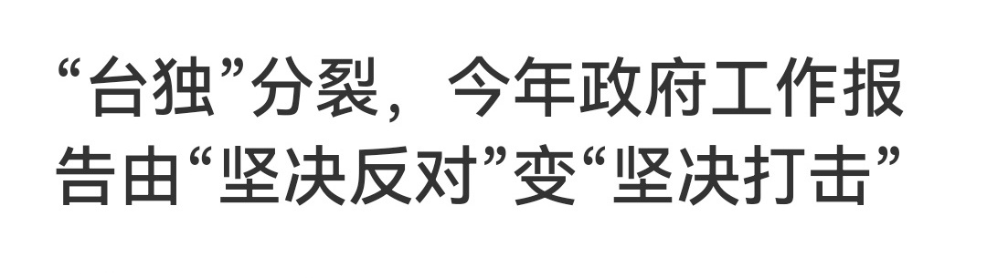 全国两会今年政府工作报告由“坚决反对台独分裂”升级为“坚决打击台独分裂”