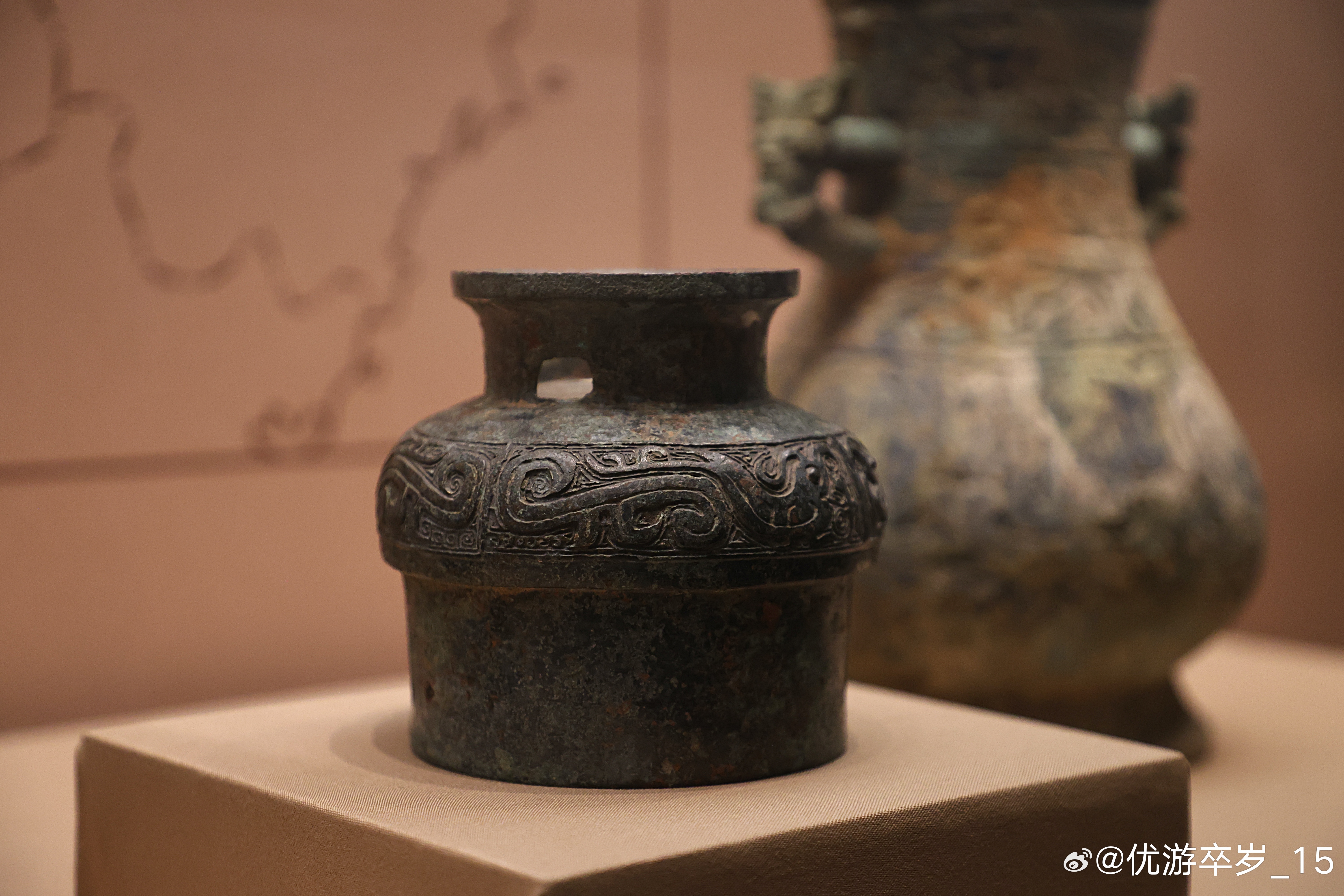 我的2026 【中国之中-中原古代文明精粹】 铭文青铜器盖西周(公元前1046-前771年)洛阳市考古研究院藏洛阳北窑庞家沟M701出土。器盖浑圆饱满,下接直裙,盖裙较长,可更增加器盖的密闭性,有利于物品贮存。顶部有高圈足形捉手,上端折沿外撇,并有两个镂孔。盖上有宽饰带一周,饰两两相对的夔龙纹,整体简洁大气。盖内顶部有铭文。此器出自北窑墓地,从出土的50余件带铭文器物来看,北窑墓地是一处专门用于集中埋葬西周王室贵族的公共墓地,虽然因盗掘难以考证墓主人具体身份和相互关系,但该墓地的发现为研究西周高等级墓葬提供了宝贵资料。清华大学艺术博物馆展出2026.2.8约会博物馆 文物