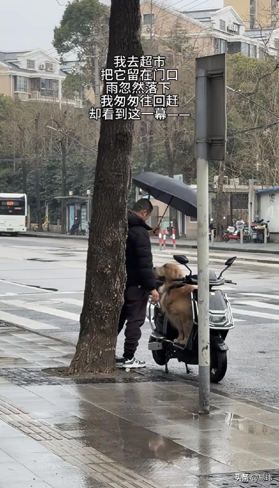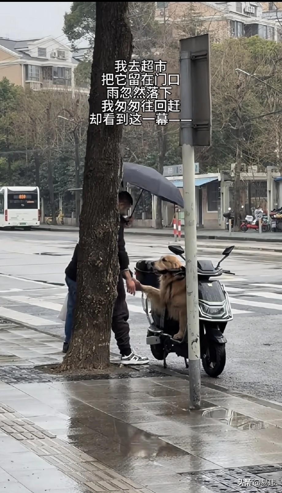 泪目了!还是好心人多啊!一位小哥哥养了一只金毛狗狗,平时就特别宠爱它,这天他骑电动车带着狗狗去超市买东西,突然天空下起了雨,于是小哥哥就让狗狗蹲在电动车上等他,结果当他买好东西出来的时候,看到了令人感动的一幕。 只见一位路过的小哥哥看到狗狗在淋雨,于是就给它打了伞,还和狗狗握手,之后又一位老人走了过来,他们一直在和狗狗握手互动,估计是担心狗狗乱跑,主人会着急,一直守护在那里。感动的小哥哥赶紧感谢他们!