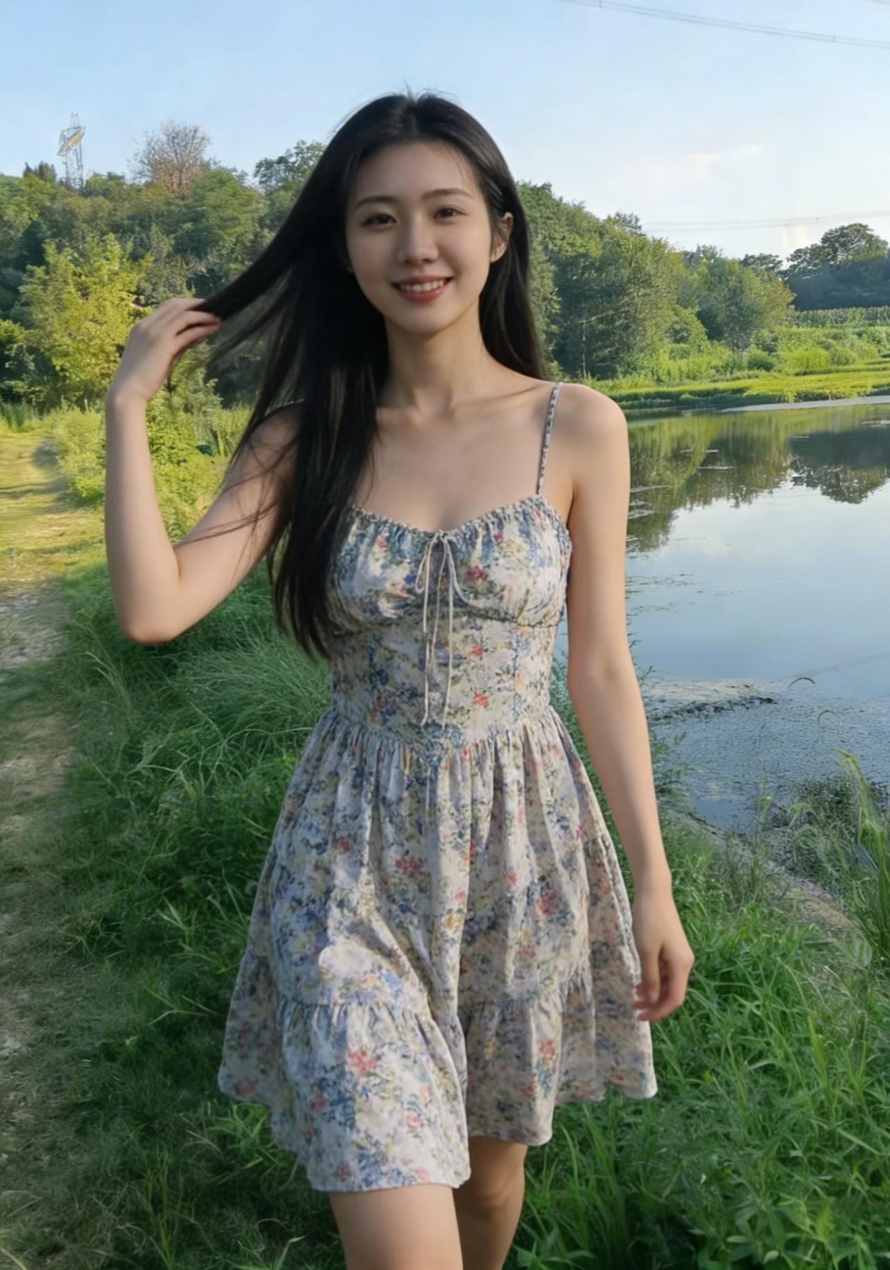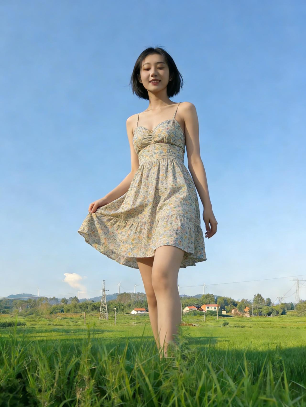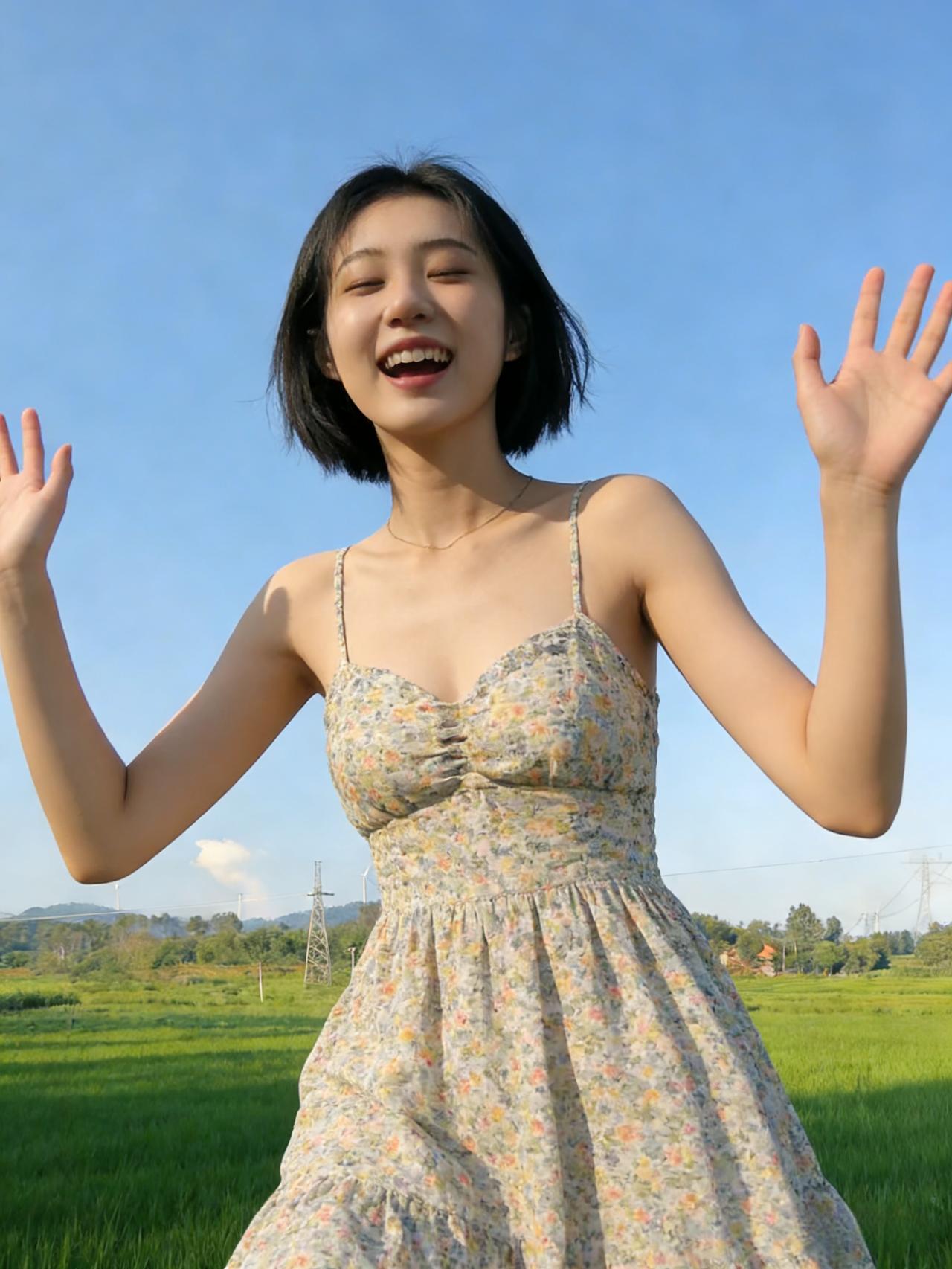 长发给暮色织了层薄纱 她站在塘边,影子掉进水里 和云的倒影缠成柔软的绳 ~ 比耶的手势惊飞了蜻蜓 碎花裙抖落满襟的星子 笑声漫过青草,漫过田埂 漫过远处风车转动的轰鸣 ~ 她的脚步轻得像蒲公英 路过稻浪时,穗子们都弯了腰 路过菜地时,菜叶举着露珠致敬 路过光阴时,季节为她放慢了节奏 ~ 风掀起裙裾,露出半截脚踝 沾着的泥土有故乡的温度 她不用说话,所有的植物都在吟唱 关于一个女孩和田野的秘密