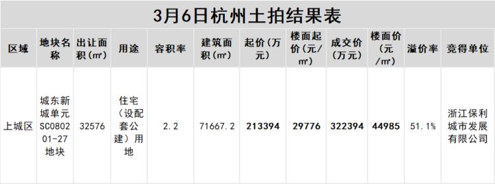 本次竞拍过程火热,经过109轮竞价,地块由浙江保利城市发展有限公司竞得。