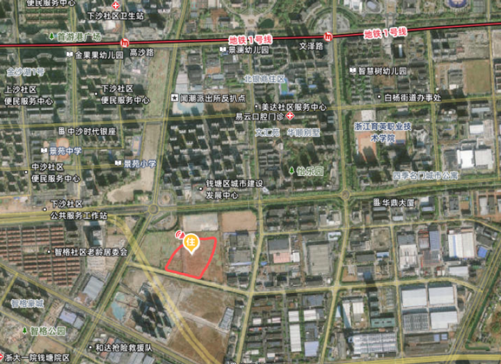 钱塘区东部湾新城地块,位于下沙6号大街以南,不足之处是距离1号线高沙路稍远,步行距离近2公里。