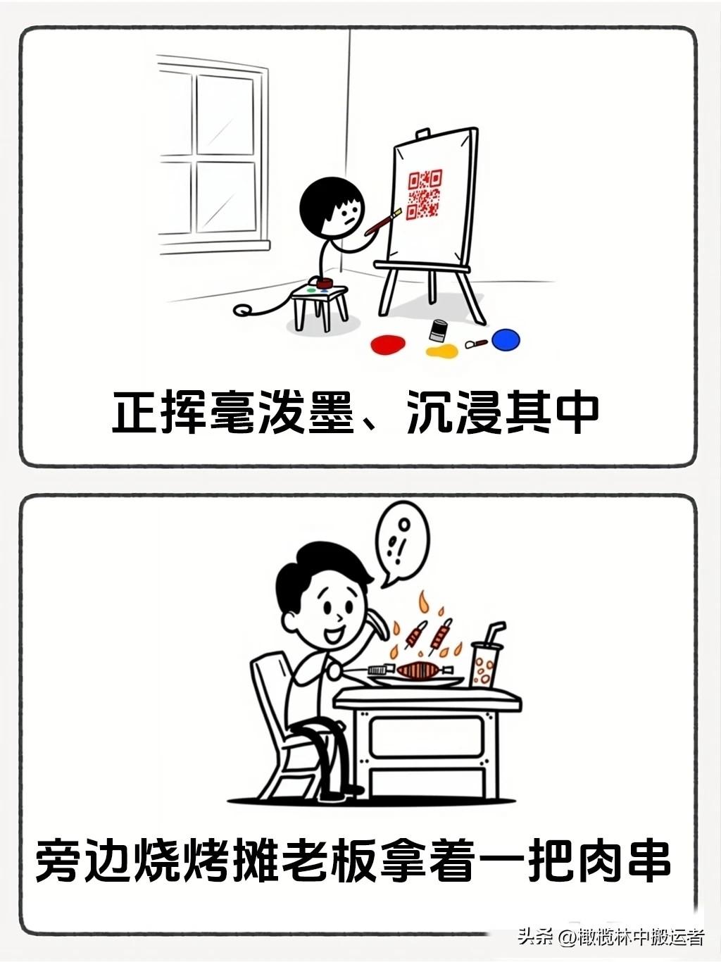 趣味漫画:“广场练书法正得意,烧烤摊老板一句话让我怀疑人生🤣一秒笑抽,看完让你