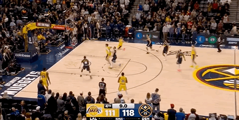 暂停!最后7.9秒拉拉维亚打进今天他第一球 自抛自扣,6中1湖人vs掘金