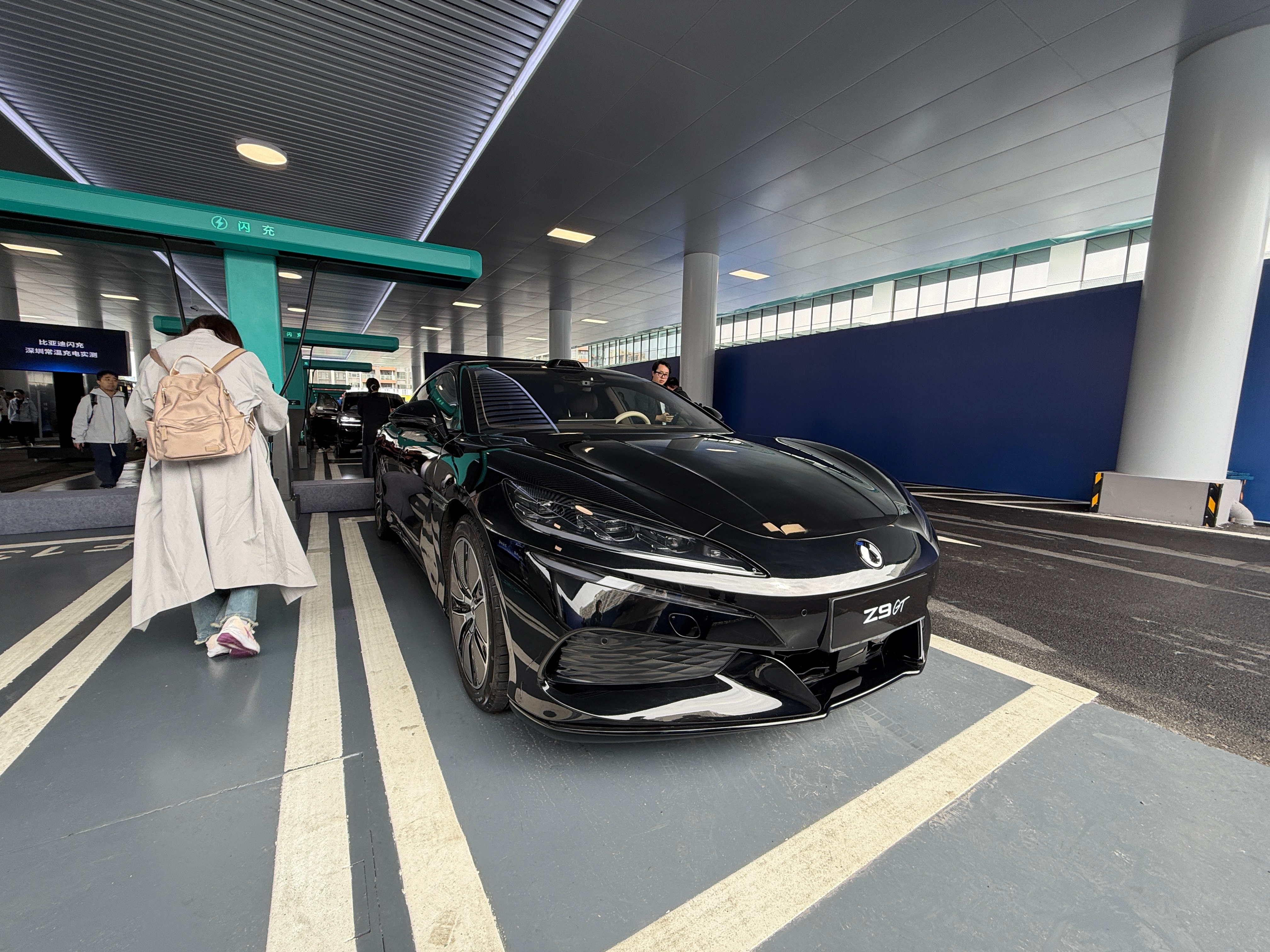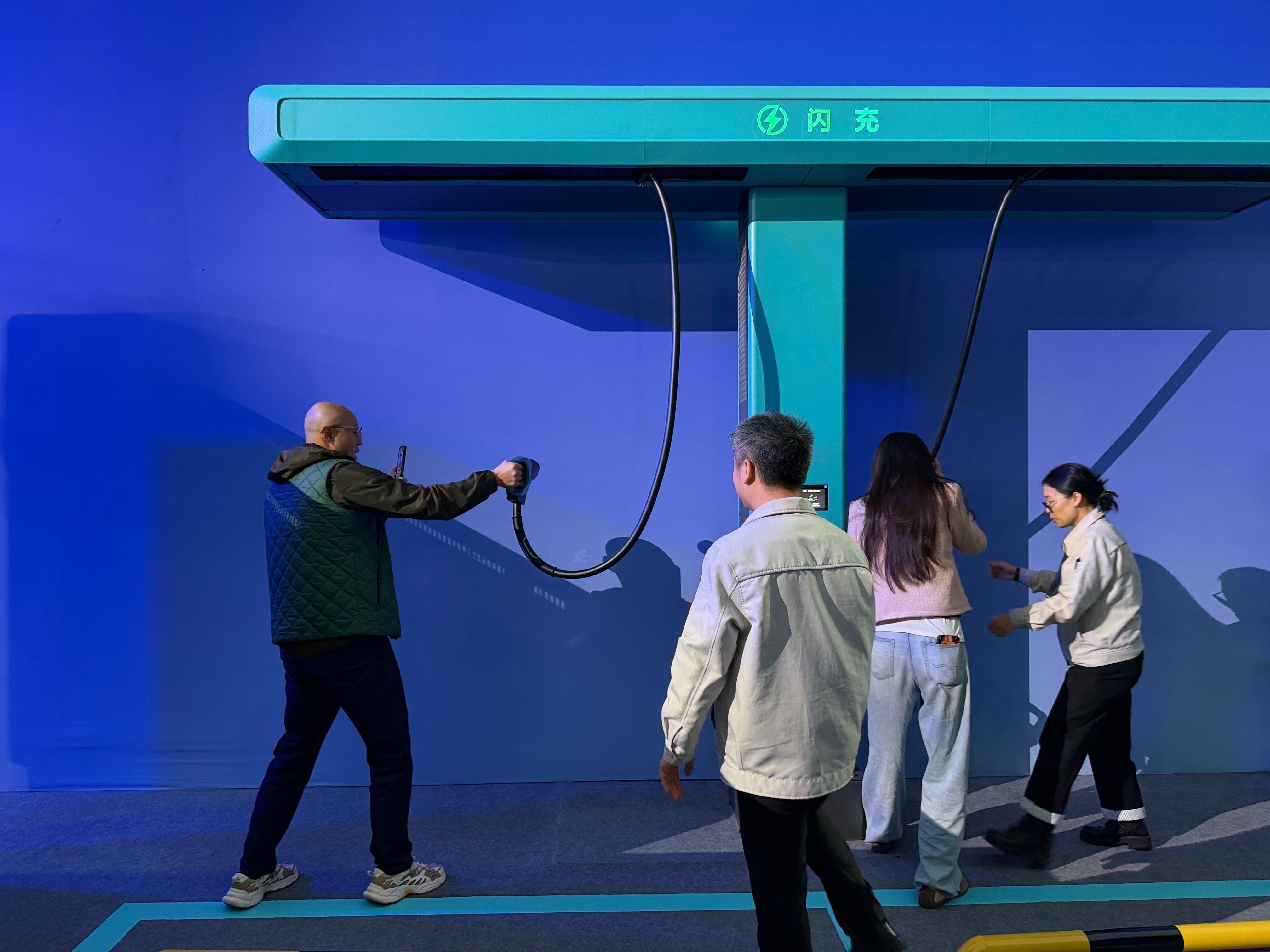 充电桩也很贴心。悬吊式设计枪线不拖地,单手就能操作,即插即充自动扣钱。到明年底,全国要铺2万座闪充站,城区5公里内、高速每100多公里就有一个。