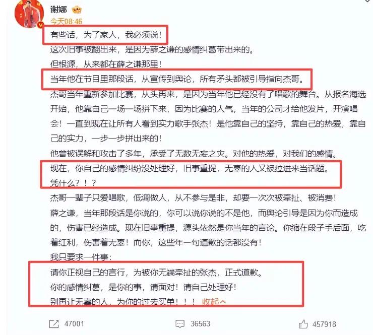 谢娜要薛之谦道歉,反而引起了张杰前女友段曦的意难平,她也要求张杰谢娜道歉。