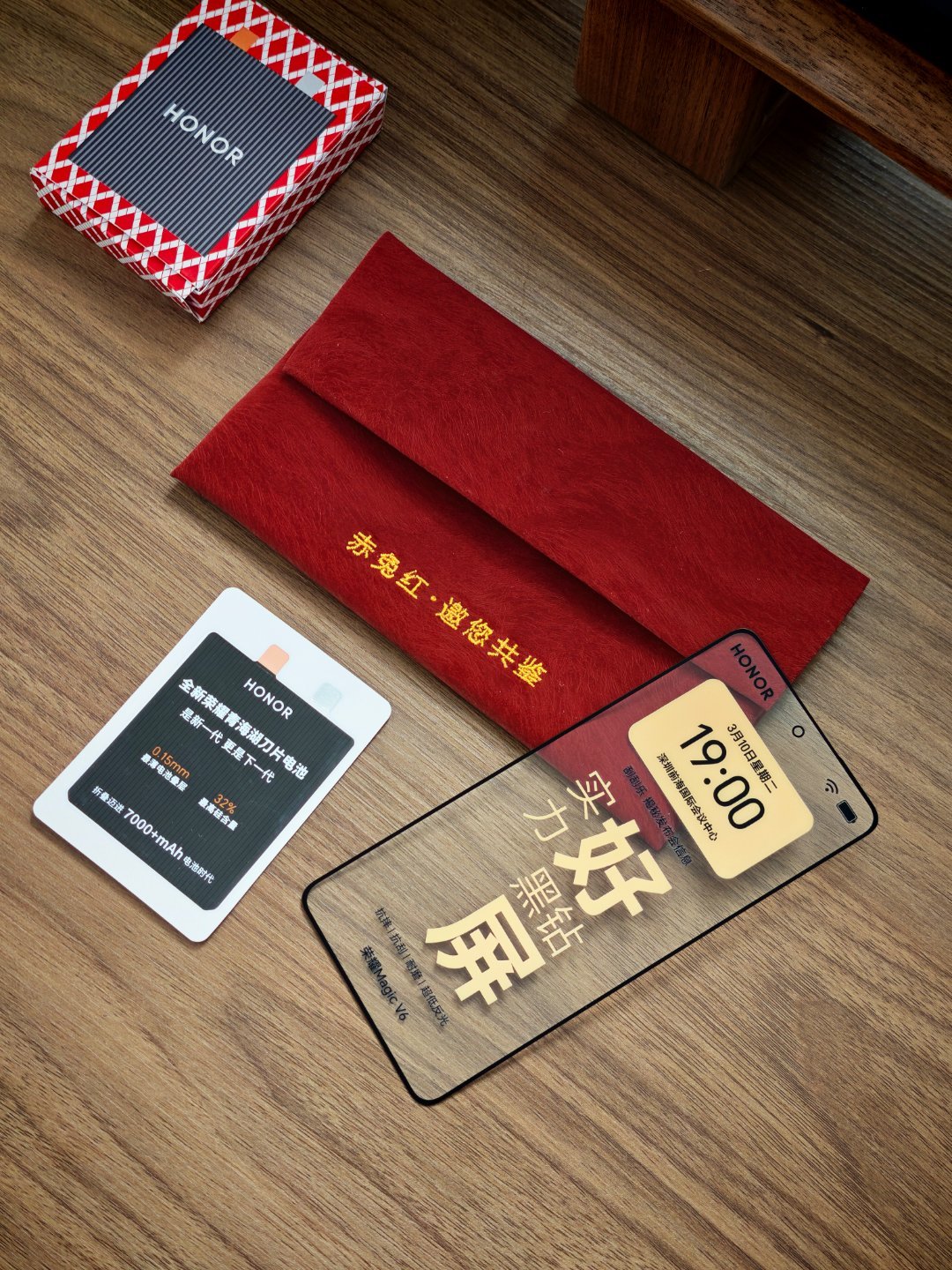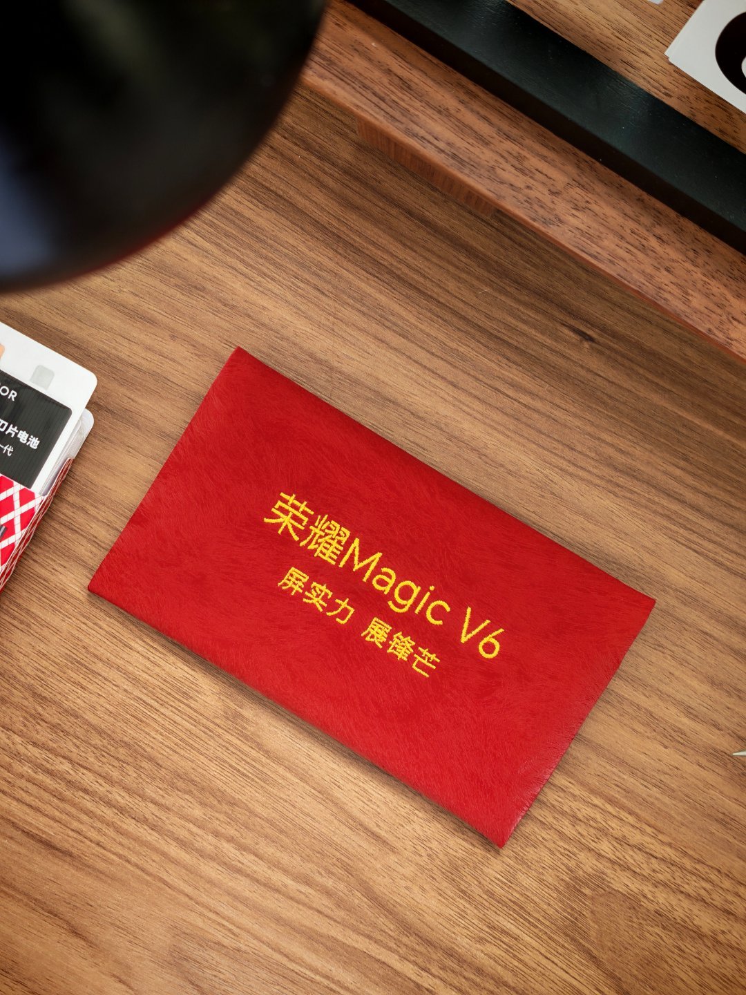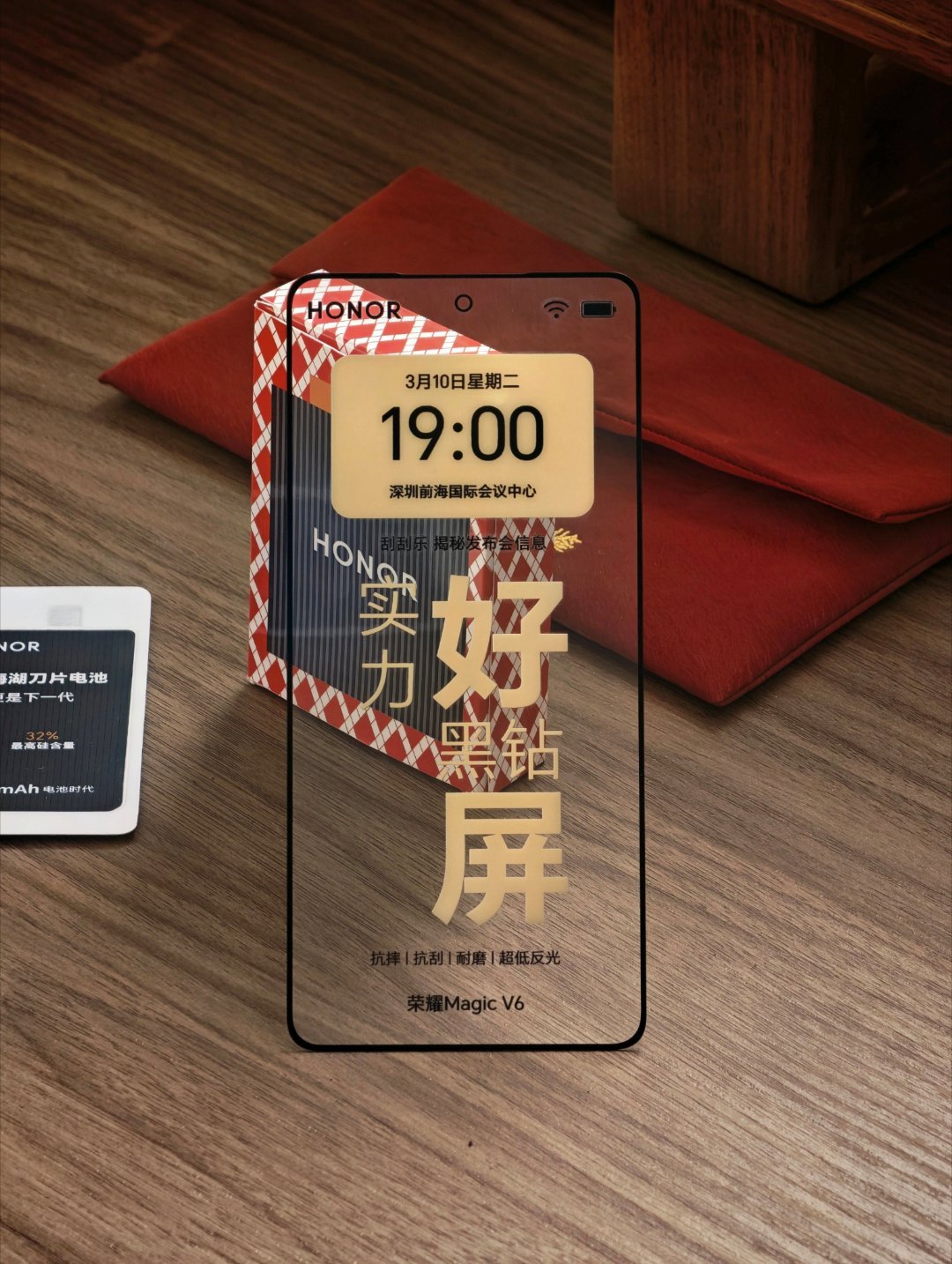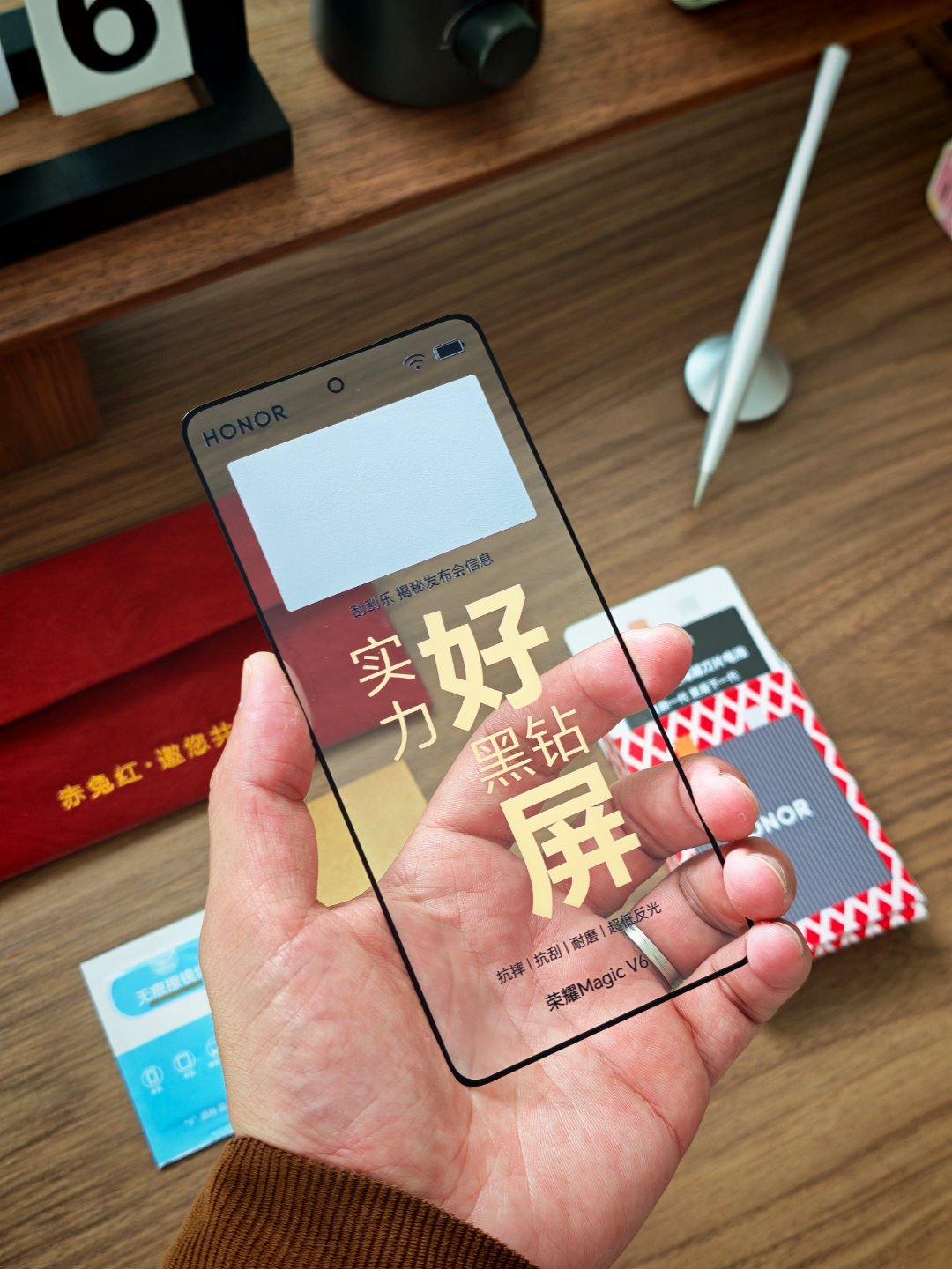 阿耀寄来了一个红包,这个质感也是贼舒服啊。里面还有一块“屏”,这块盖板应该也就是Magic V6上面那块外屏的盖板了。抗摔抗刮耐磨低反光,直接配了砂纸刮开刮花了区域就是发布会时间。试了砂纸刮开了,屏幕确实没有花。黑钻屏,有东西。屏实力展锋芒,10号见最终的全部揭晓了。折叠屏最好的屏幕长什么样 ?这个月就会有答案。