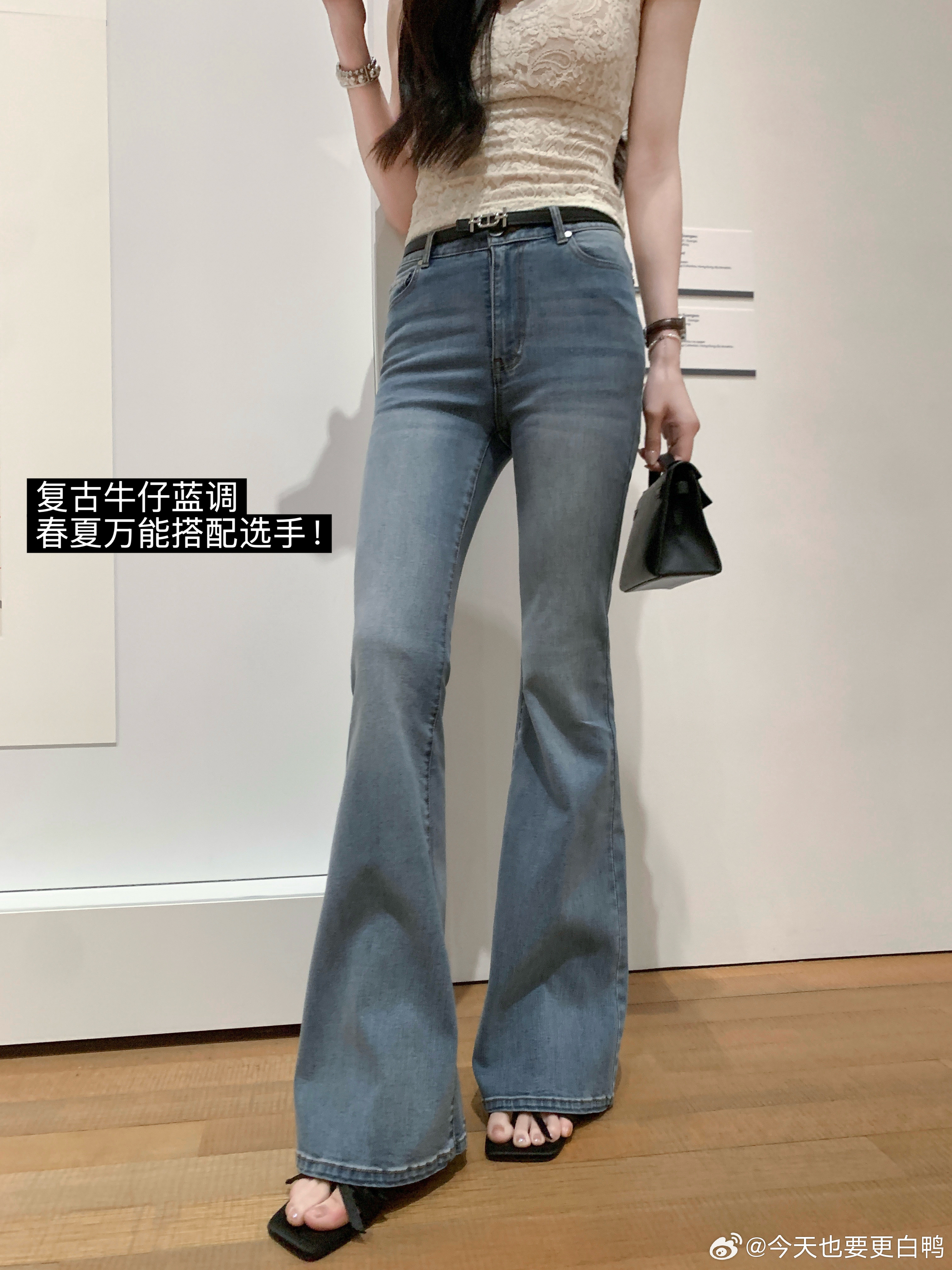 明天开始新品直播了哦~⏰可以重点关注一下这期的腿精牛仔裤!喇叭裤型超绝!!比例逆
