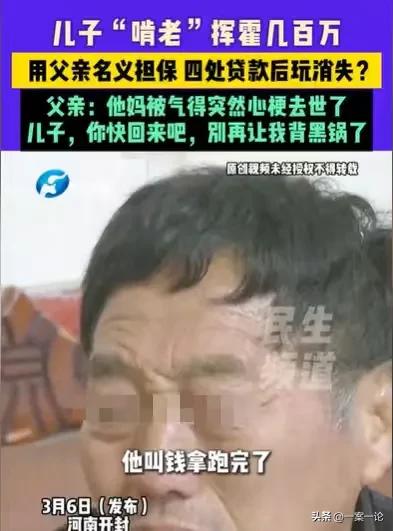 “这就是溺爱的后果!”河南开封,男子玩上了一款游戏,每次几千几千地充钱,没钱了就让母亲借,母亲给了200万左右,后来又不停地替儿子还债,还着还着,她就被气得心梗,离世了。母亲留下300多万的欠条,都是别人欠他母亲的,他在父亲面前痛哭流涕,表示自己改过自新,父亲又信他了,让他拿着这些欠条去要债,还给了他一套房子,结果他债没有要回来,反而人消失了,还有许多债主找上门,向他父亲讨债。 男子让妻子给手机,他说他要打个电话,妻子没有多想,把手机,转头妻子就发现,丈夫用她的手机,贷了56,000元。 妻子非常恼怒,终于明白,丈夫死不悔改,自从他迷上了那款游戏,每次几千几千地充钱,家里早就被他败光了。 现在又开始用她的名义贷款,妻子越想越不对劲,就和他离了婚,带着孩子,远离了他。 男子离了婚,还不知道自己错在哪里,他继续沉迷游戏,没钱了就向母亲借。 他有一个做生意的母亲,深爱着他,即使他离了婚,母亲也没有嫌弃他,只要他开口要借钱,母亲总会满足他。 母亲一借就借了200多万,但母亲始终没有意识到事情的严重,她也不知道儿子为何要借那么多钱。 直到儿子在外面借钱,债主找到他的母亲,他的母亲不停地替他还债,还着还着,母亲终于意识到事情不对劲。 可一切为时已晚了,她那200多万已经不一去不复返了,她还要不停地替儿子还债,她恨铁不成钢,最终气得心梗,离世了, 母亲一离世,四五个小时之后,男子回来了,他跪在母亲面前,痛哭流涕,发誓自己以后一定会承担起家庭的重任,不再这样下去。 父亲一看儿子改邪归正了,他深感欣慰,现在他没有了老伴,能够依靠的也就只有儿子了。 为了辅助儿子,他向儿子兜了底,说家里还有一套门面房,还有十几万现金,母亲还有三四百万的欠条, 这些欠条都是别人欠他母亲的。 男子一看,原来家里还有这么多钱,他就赶紧跟父亲说,他要拿母亲的欠条,去起诉那些欠债的人,把钱要回来。 他还让父亲给房产证,他要把房子租出去,好让家里多一份收入。 父亲看着儿子,那懂事的样子,真是浪子回头,千金不换,他信儿子,将家产都给了儿子。 男子就拿着那些欠条去要债,他果然要回来一部分债,不过他一分钱都没有往家里拿,反而要到这些债,就消失不见了。 整整一年,父亲看到儿子没了踪影,这才意识到儿子已经执迷不悟了,没有救了,他悔不当初。 更糟糕的是,很多小额贷款的人找上门来了,要男子的父亲还钱。 原来男子拿着房产证,骗完这家,骗那家,到处贷款,欠下了许多债。 这些贷款的担保人就是男子的父亲,因为男子的父亲不识字,男子骗父亲说租房要父亲的签名,他就这么一签名,结果就让儿子到处骗贷款。 看到这些人上门要债,男子的父亲非常痛心,儿子真的太败家了。 眼下看着儿子欠下这么多债,男子的父亲也还不了这些债,他找来调解员,希望把儿子找回来,解决他的事情。 那么男子用父亲的名义到处贷款,父亲不知情,签了字,这些民事行为是否有效? 其实这就要看,这些民事行为是否是男子父亲的真实意思?如果不是,那么这些民事行为无效。 《民法典》第143条规定:具备下列条件的民事法律行为有效: (一)行为人具有相应的民事行为能力; (二)意思表示真实; (三)不违反法律、行政法规的强制性规定,不违背公序良俗。 男子的父亲并不识字,只会签字,所以儿子想干什么他并不清楚,可以说,到处贷款,并非他的真实意思,这些民事行为是无效的。 当然男子的父亲要想证明这一点,就需要举证了。 《民事诉讼法》第67条规定:当事人对自己提出的主张,有责任提供证据。 他只能证明自己确实不认识字,在不知情的情况下签的名,他才不需要承担责任。 那么你对这样的男子有何看法呢?