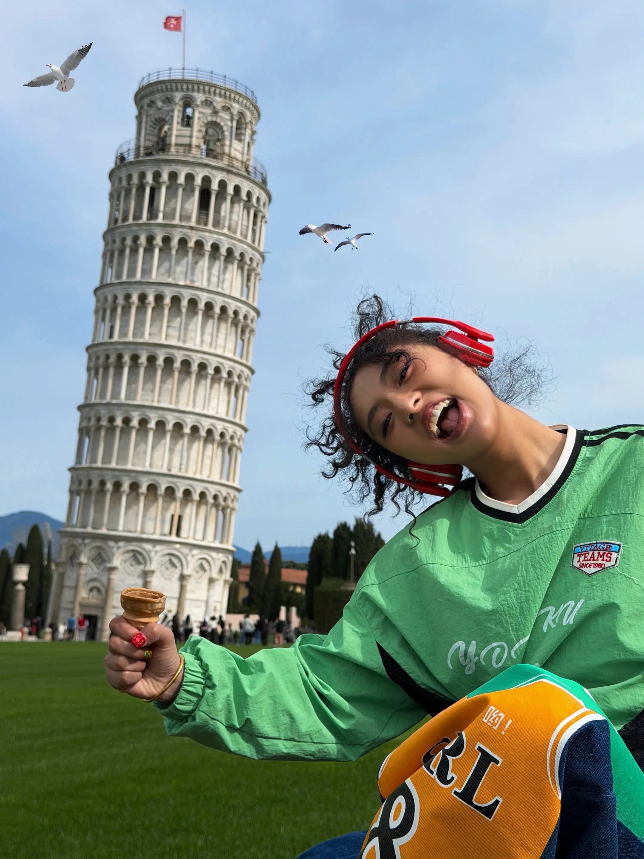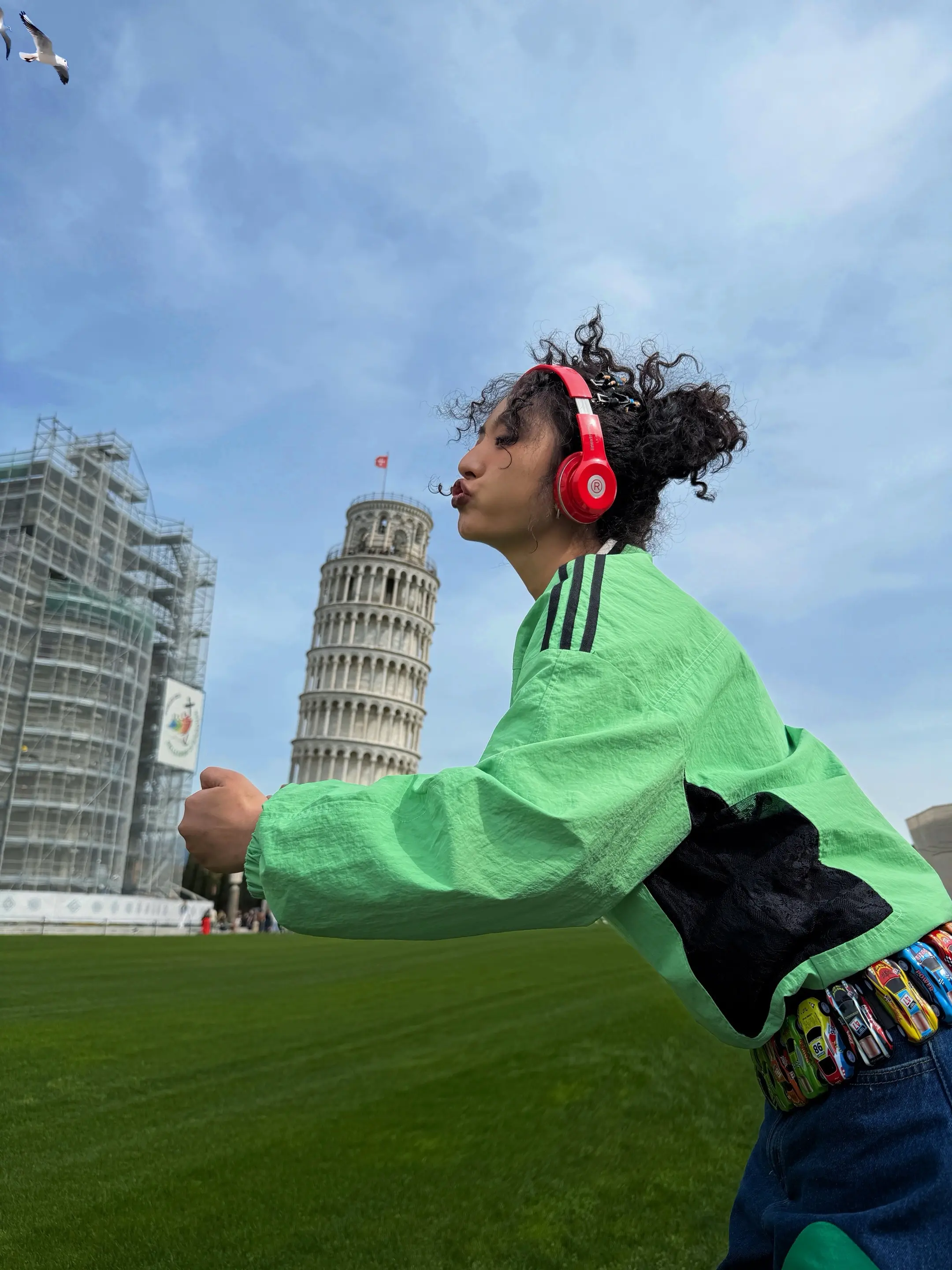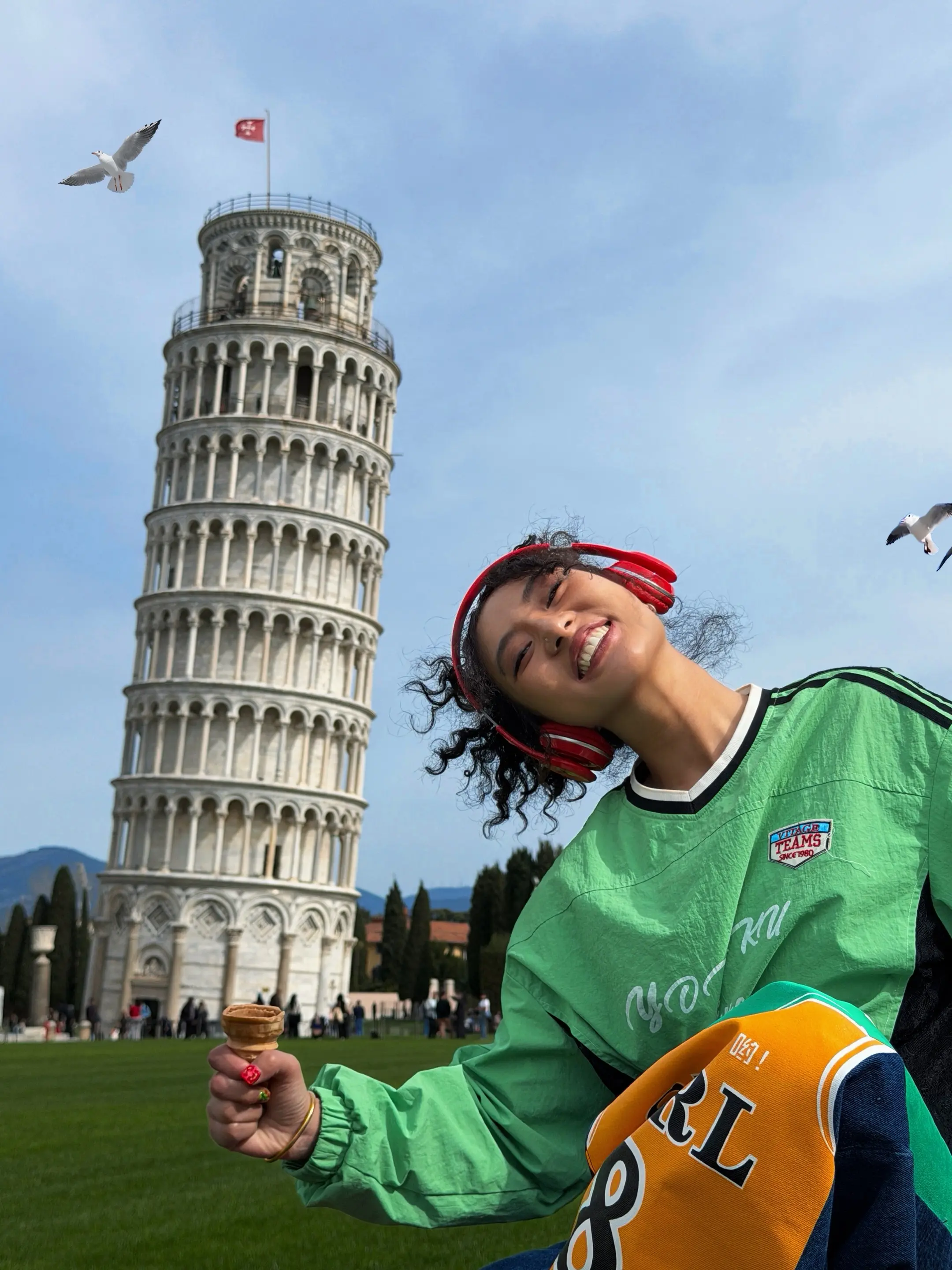 最最最最适合比萨斜塔的穿搭出现了!!!左滑图片请看我把比萨斜塔背回广州,这套look简直就是出图大师,这种绿色生命力的感染谁懂啊…牛哥说他记忆最深的一课就是比萨斜塔实验,今天来到这里也算是圆了他小时候得梦想吧