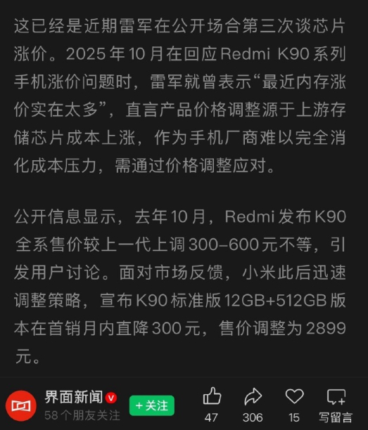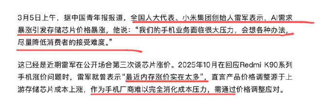 哦吼,大涨价时代真的要来了!雷总也说过好多次了,也是给大家打了预防针了,告诉大家真压不住了现在小米荣耀都是开始涨价起来了,而且这还只是个开始,还不知道准备涨到哪到哪呢 我过年那会也就用AI软件拿了几块钱红包,怎么代价那么大啊