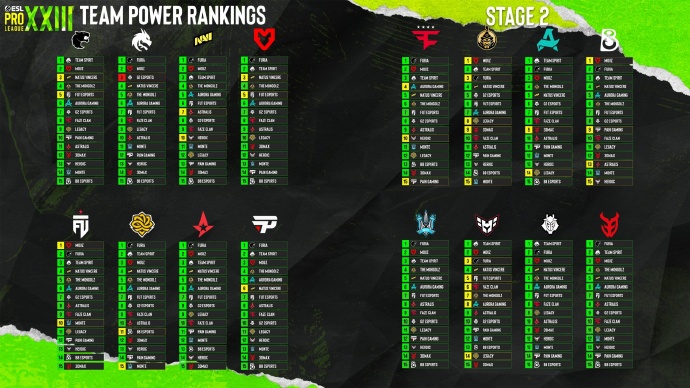 ESL公布EPL S23二阶段队伍主观投票排名:黑豹居首绿龙次席