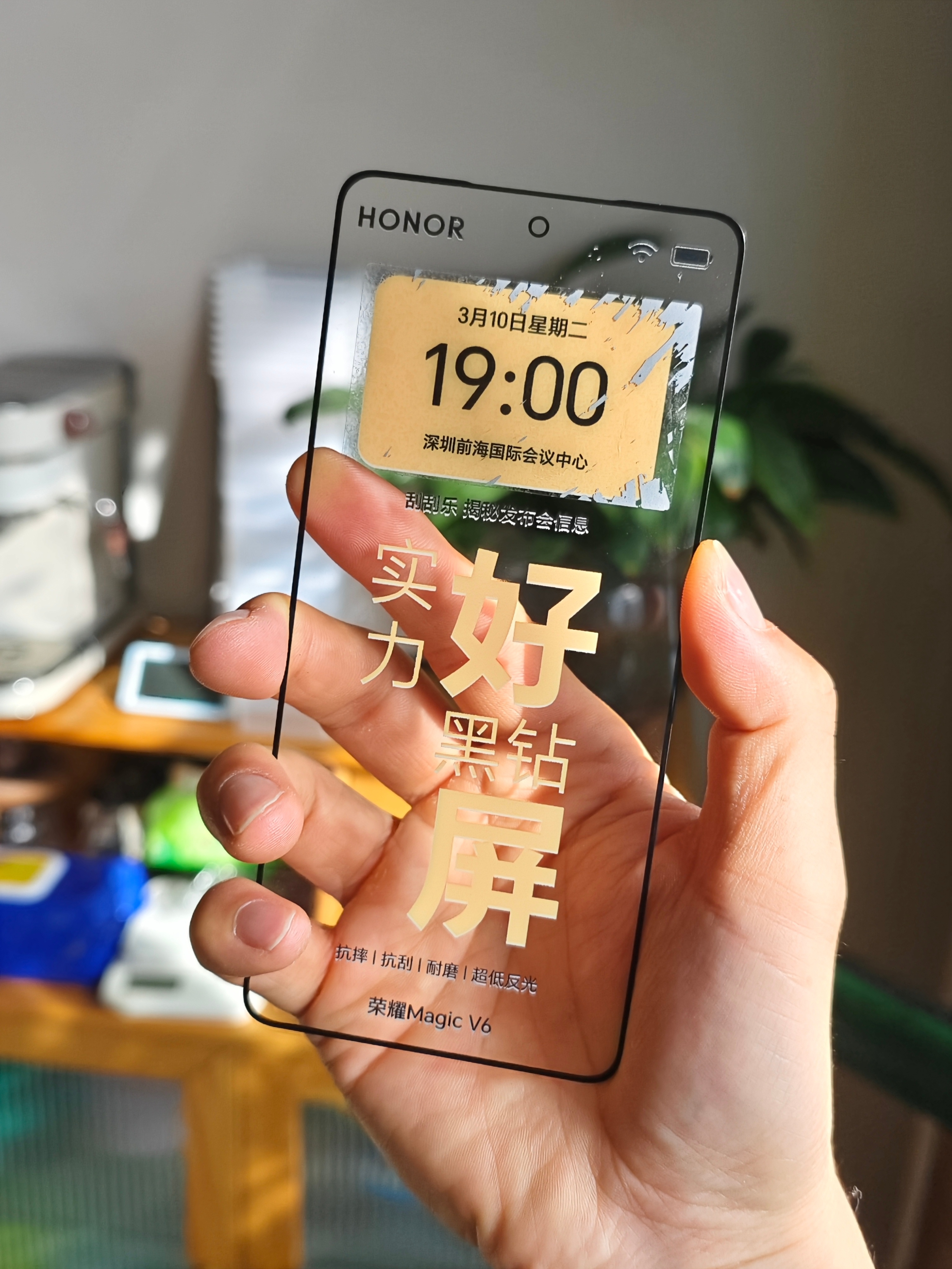 这次荣耀Magic V6的发布会邀请函,是大折叠V6手机的正面屏幕玻璃—一块黑钻屏,竟能不惧砂纸打磨刮擦,无划痕!当然,这不是重点,集大电池,高性能,轻薄于一体才是真的6!