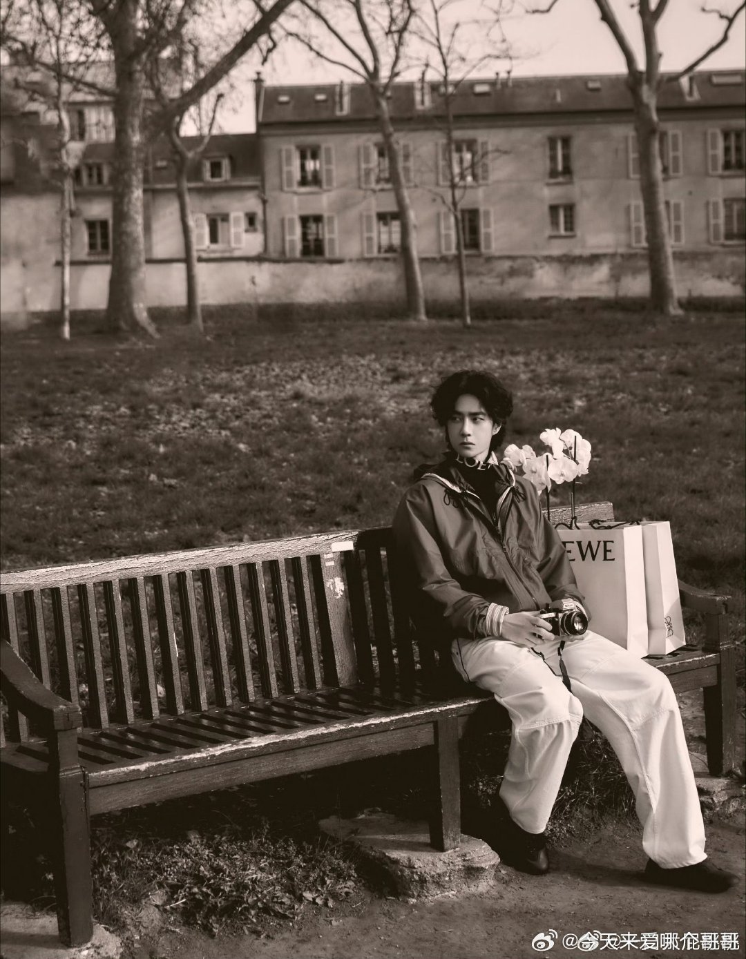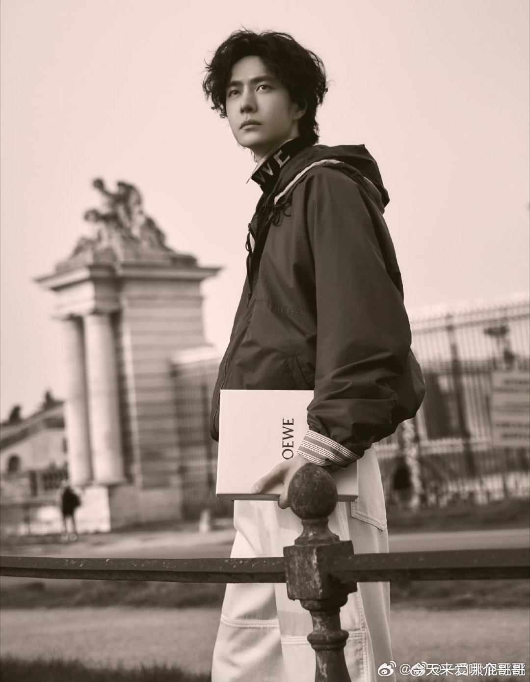 王一博巴黎时装周LOEWE看秀出图,克莱因蓝好有春天的感觉