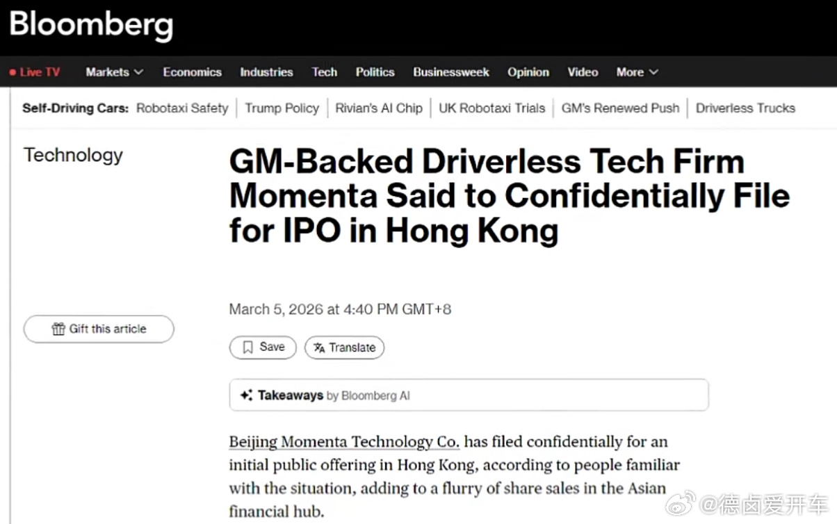 刚看到彭博消息披露 Momenta 已经秘密递表计划在港股上市,计划筹资至少 10 亿美元。