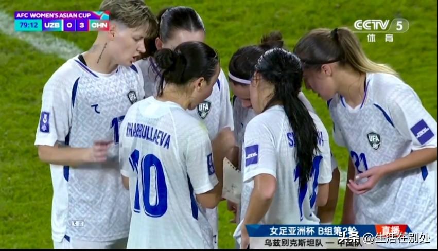 又爽又飒的美女主帅库尔比特,场边指挥也是一场风景线。 在常规时间80分钟时,0:3落后时,美女主帅库尔比特赶紧向场上10号球员招手,10号球员接到一张主帅递过来后纸条,然后奔向己方球员,展开纸条,向大家传递库尔比特的“妙招”……之后,这张纸条被攒成团丢弃在门网内,吸引了直播画面镜头。 女足亚洲杯小组赛第二轮,乌兹别克斯坦队已2连败,要想不垫底,下一场要赢下孟加拉国女足,到时不知这位美女主帅有什么“妙招”。而中国女足3:0战胜乌兹别克斯坦女足,取得两连胜,积6分,净胜球5个,位于小组第二位。