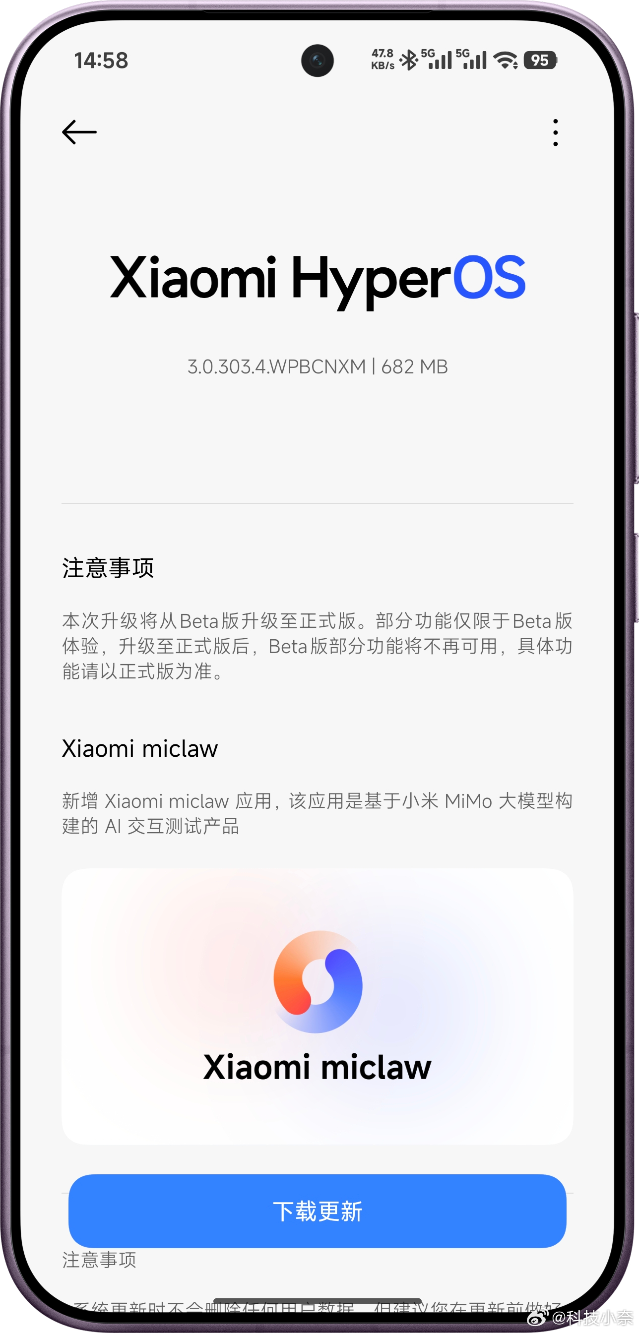 小米miclaw开启封测基于小米MiMo大模型构建的Xiaomi miclaw开启封测,我的小米17 Pro Max冷烟紫16+1T已经吃上小米龙虾了,叫我先来帮大家试试看到底咋样~