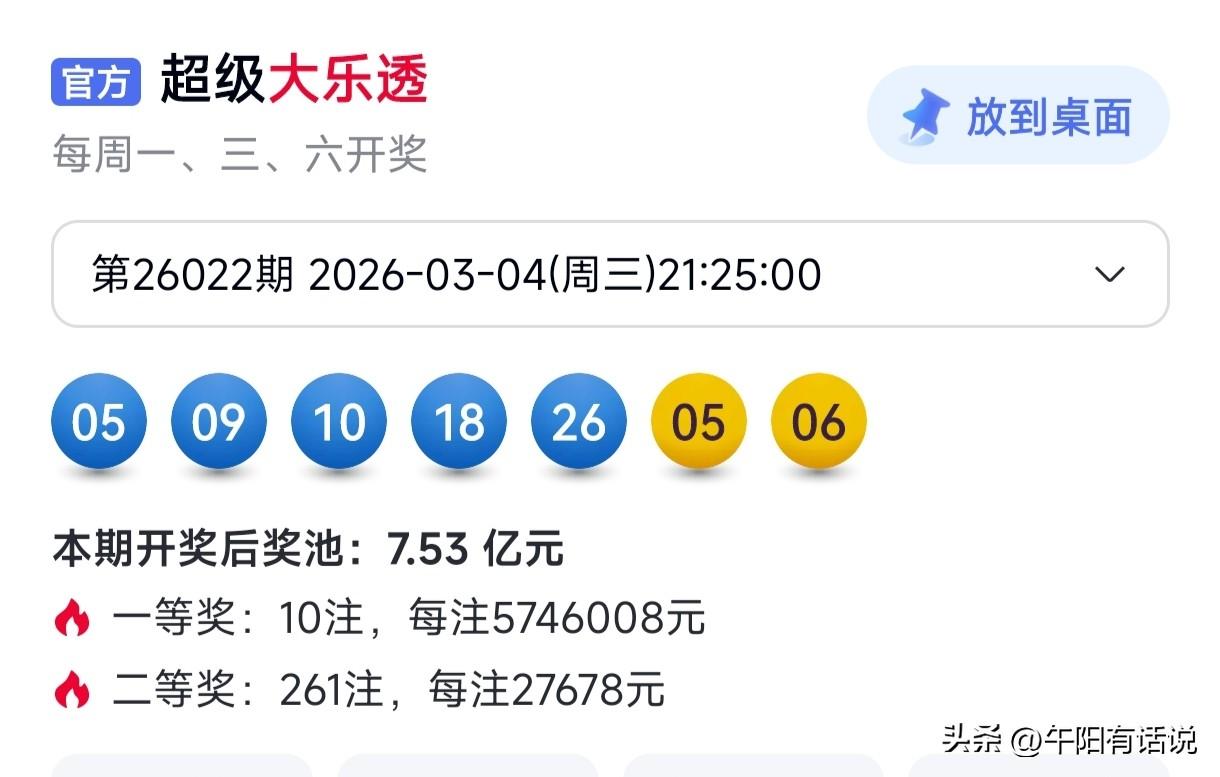 大乐透26023期号码共享,前区重点关注重号,后区防大号反弹 开奖快讯 超级大乐透26022期开奖号码为: 05 09 10 18 26 + 05 06 前区号码走势 最近几期,由于相邻各期所开出的奖号,呈交错开出状态,导致重号和邻号同时遇冷。不过最近两期,小号出现连续热开,使得奖号主要集中在小号区域,致使本期重号和邻号同时开出。 本期重号开出了一个奖号05,而重号则开出了两个奖号,分别为09和18。重号最近一段时间,断区呈爆发式开出,偏冷严重,本期开出了一个奖号,热度开始转暖,预计接下来很有可能会出现反弹热开。 相比重号而言,最近一段时间,邻号走势并不算弱,而且强度非常大。尤其是在前几期,两码和三码邻号出现了集中爆发。不过随着两期断区的开出,邻号回调趋势明显,虽然本期再次开出了两个重号,不过接下来回冷的概率较大。 后区号码走势 本期后区开奖号码与上期非常相似,奖号再次开出了全小号码组合,上期开出了04-05两码,本期则在05重号的基础上,开出了两码05-06组合。 最近一段时间,全小号码热度较高,而一大一小号码则正处于回调阶段,走势低迷。在连续开出两期全小号码后,接下来需谨防全大号码出现反弹。 大乐透26023期晒号 前区号码: 05 08 15 22 24 26 27 31 后区号码: 07 10 11 精选一注 05 15 24 26 31 + 10 11