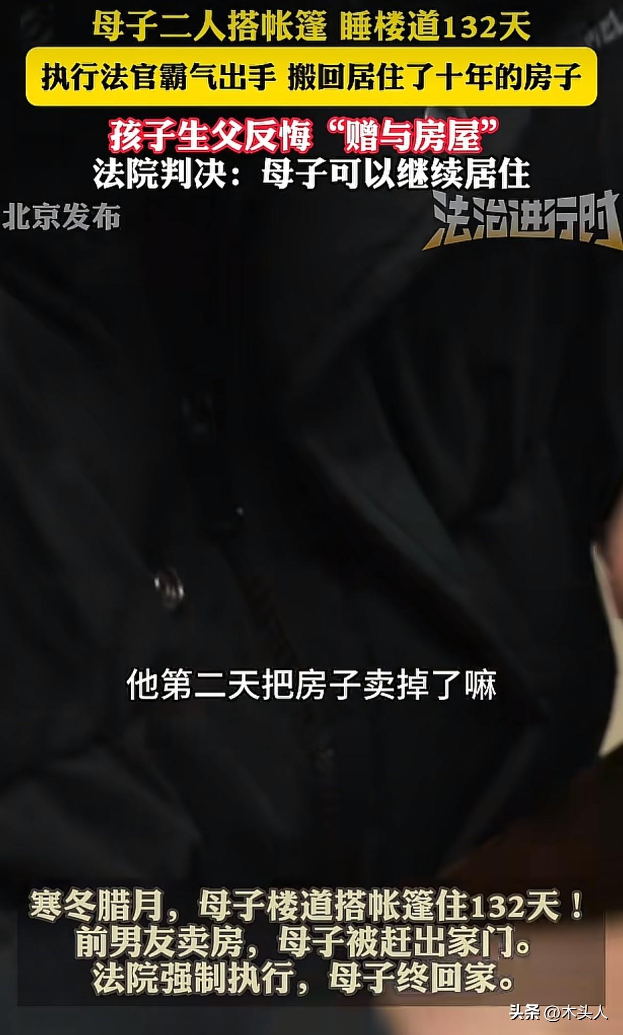 “这就是人性!”北京,女子怀孕,男友却迟迟不肯结婚,女子这才发现男友是有家庭的。女子生下儿子后,两人关系急转直下,选择分手,双方约定:孩子归女子抚养,男子支付抚养费,并将自己一套房屋给儿子。多年后,女子要求男子办理房屋过户,可万万没想到,男子却撤销赠与,房子归男子所有,但是女子和儿子可以居住。男子却把房子卖给了其他人,对方撬锁进入房屋,将母子二人的东西扔出来,女子只能带着儿子住在楼道里,但是她并未放弃,仅用一招,成功拿回房子。 于女士痛哭流涕,说自己不是一个好妈妈,没能给儿子一个稳定的家。 13年前,她和董先生恋爱同居,于女士怀孕后,董先生却没有丝毫结婚的打算,更让她崩溃的是,她发现董先生还有了别的女人。 事后,她才知道,对方竟然早就结婚了,而自己才是介入别人婚姻的那个人。 那时她的肚子已经很大了,2013年,儿子小董呱呱坠地,董先生也跟妻子离了婚,但是他并未选择和于女士结婚。 两人的关系急转直下,于2014年分手,并签了分手协议。 协议约定:儿子小董归于女士抚养,董先生支付抚养费,并且把自己名下一套房子给小董。 这套房子当时并没有办产权证,因此双方约定,等董先生办好产权证后,再把房子过户给儿子小董。 之后的多年里,于女士带着儿子居住在这套房子里,双方相安无事。 2020年,于女士将董先生告上法庭,要求他履行赠与承诺,把房子过户给儿子。 可没想到,董先生竟然当庭表示撤销赠与。 《民法典》第658条规定:赠与人在赠与财产的权利转移之前可以撤销赠与。 由于当时房子产权还未过户到小董名下,所以赠与人董先生享有撤销权。 法院认定董先生享有撤销权,驳回了于女士母子过户诉求。 2023年,董先生将于女士告上法院,要求母子二人搬离房屋。 法院认为:虽然赠与撤销,但是从保护妇女儿童的角度出发,考虑到小董自出生就居住在此,于女士在京无其他住所,孩子还得就近上学等情况,法院认为于女士母子应继续居住在此为宜,于是驳回了董先生的腾房诉求。 可就在法院作出终审判决2天后,董先生却做出了一个让人惊讶的决定:他把房子以450万的价格给卖掉了,买房人是郑某,而于女士对此毫不知情。 直到2025年9月11日,邻居给她打来电话,说他们家的房门被人撬开了,于女士才如梦初醒,原来房子早就被董先生卖了。 于女士觉得这场交易疑点重重,郑某和董先生是早就认识的,他并没有实际看房,这套房子的合同价是450万,可郑某只实际支付了250万,远低于市场行情。 郑某买下房子后,撬锁进入房屋,将于女士的东西全部丢了出来。 无处可去的母子俩,只能在楼道里安了家,天气渐渐转凉,好心的邻居送了他们一顶帐篷,他们母子就蜷缩在这里。 于女士母子忍无可忍,将董先生和郑某告上法院,要求二人返还房屋,并赔偿损失。 董先生和郑某却主张确认房屋买卖合同有效,双方再次对簿公堂。 法院认为:郑某虽持有房产证,但其在相关诉讼判决之前,采取暴力行为侵占房屋,构成对母子合法占有房屋的妨碍。 于女士母子基于之前的协议和法院判决,对房屋享有合法的占有权,郑某的行为侵犯了他们的合法权益。 最终法院判决董先生、郑某将房屋返还给于女士母子,并不得妨碍于女士母子对该房屋的占有。 判决下来后,郑某却并未搬离房屋,双方矛盾进一步升级,于女士母子只能继续在楼道住着,郑某叫来7、8个人轮流守在房屋内,不让他们进门。 无奈之下,于女士申请了强制腾房。 法官进去后才发现,居住在此的并非郑某,而是一名刑满释放的男子于某,于某是受郑某委托,恶意占房。 郑某多次通过出租、转租,让多个与案件无关的案外人在此占用,还提出异议,试图拖延执行。 他表示产权证在自己手上,自己是房主,于女士母子无权居住。 但是之前法院已经判决董先生和郑某应当把房屋返还给于女士母子,于女士母子可以在房屋内居住。 那就得按照判决来,郑某有异议,可以申请另外的诉讼去维护自己的权益。 最终,于女士母子在楼道居住132天后,成功搬回房屋。 董先生在有家庭的情况下,还跟于女士恋爱同居,这种行为违背了夫妻忠实义务,是不道德的,违背了公序良俗。 他承诺将房子赠与给儿子小董,却出尔反尔,明知母子二人无处可去,还将房子出售,并让郑某恶意占房,这种行为真的让人所不齿。 郑某在明知房屋存在纠纷的情况下,还以低价购买,以为捡到便宜,强行撬锁进入房屋,结果得不偿失,房子压根住不进去。 他接下来能做的,可以请求法院撤销他和董先生的购房合同,拿回房款,并要求对方赔偿损失。 有人说:恋爱到最后,真的各凭良心了,不爱了,什么都是错的。 也有人说:这种有争议的房子,千万不要碰,不然容易惹火上身。 对此,你怎么看?