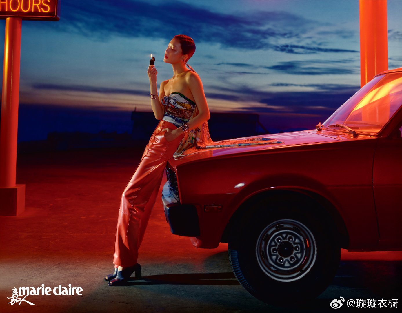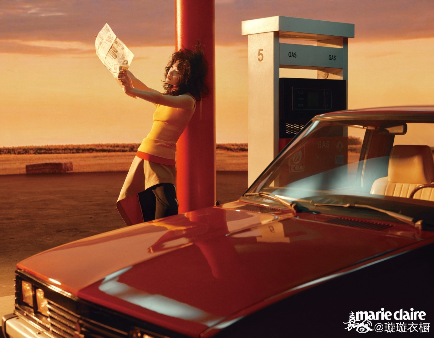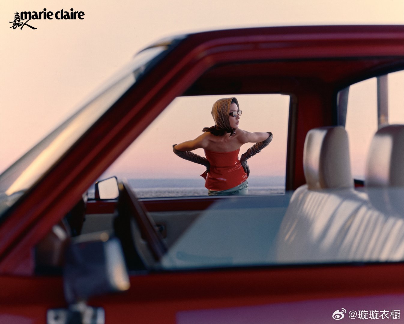 杜鹃黄昏给红车镀上蜜糖色,引擎盖支起慵懒的弧度,裙裾在风里写自由诗行。黑白光影里藏着公路电影。杜鹃嘉人三月刊封面杜鹃似水浮生大片