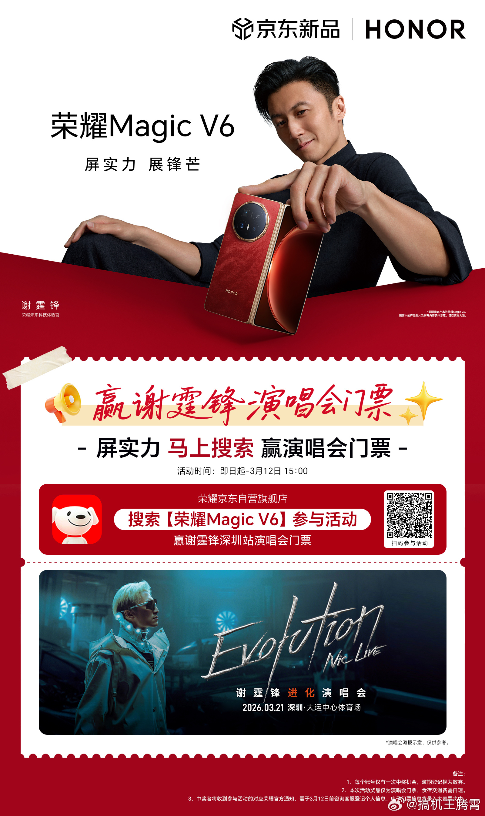 谢霆锋的打戏和脸一样权威看锋哥新宣传片,手里那台荣耀Magic V6 红得挺吸睛。这次荣耀确实把轻薄大折叠屏又卷出了新高度——8.75mm厚+219g重,机身塞进超过7000mAh青海湖电池,硅含量干到32%,折叠屏续航也卷出新高度。满血第五代骁龙8至尊版,性能释放没悬念。重点说下可靠性:荣耀全新至臻黑钻屏2800MPa航天级盾构钢铰链,50万次折叠寿命,外加IP68&IP69满级防水。折叠屏做到这个程度,有实力!大家速上京东,搜索荣耀MagicV6,有机会赢到谢霆锋演唱会门票,我先冲为敬!谢霆锋打戏好利落