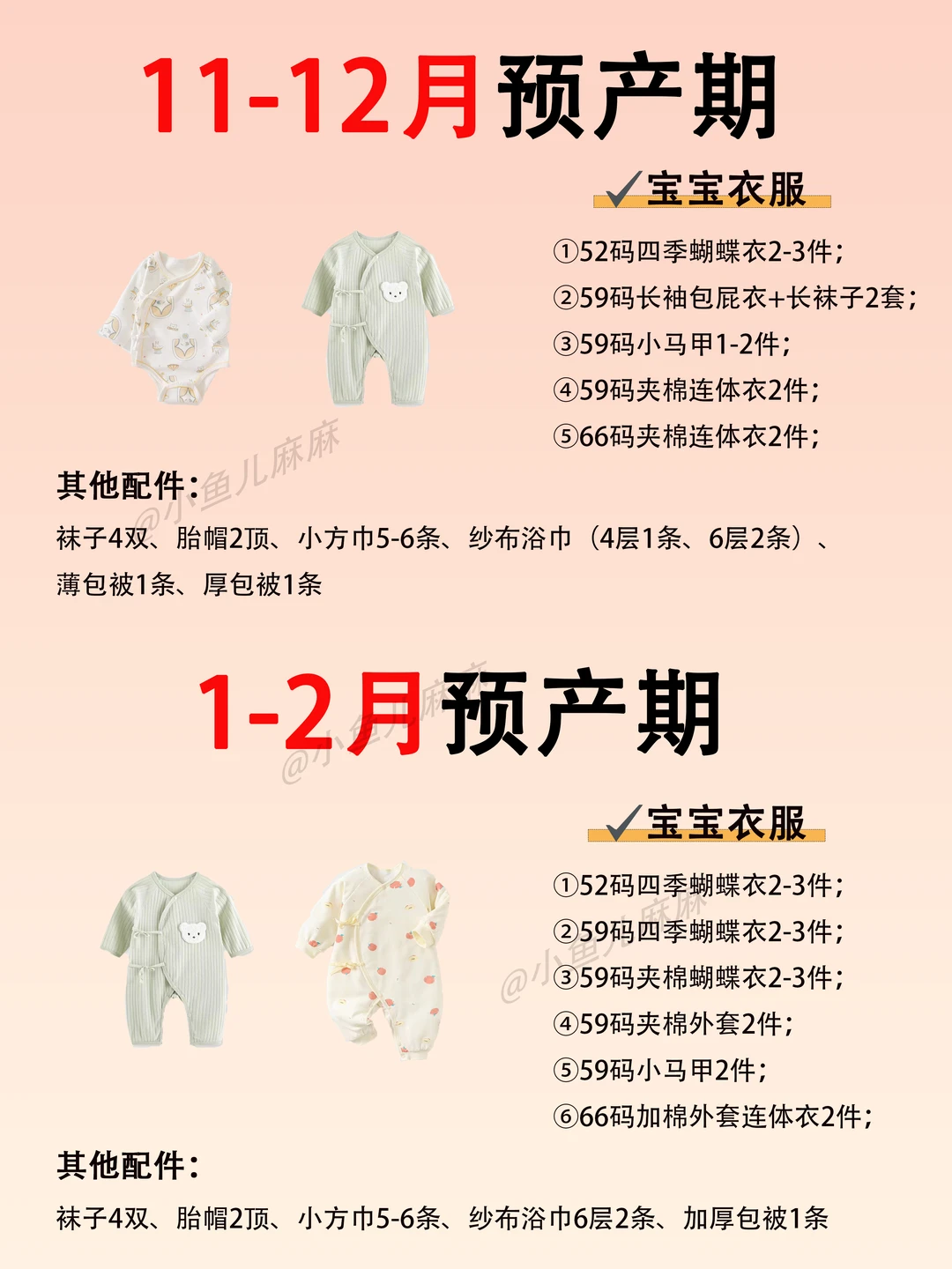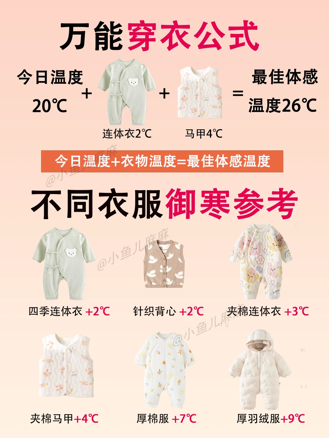 生活需要分享欲 👉恭喜你!宝宝快出生啦~ 那么,待产包里宝宝的衣服准备好了吗❓ 👉妈妈们是否还在迷茫,新生儿宝宝衣服应该怎么囤?囤多少? 别担心,小鱼儿麻麻一篇全部讲清楚 - ⭐️本文重点: •不同月份预产期里的衣服怎么囤?(可参考) •不同衣服御寒能力参考 •万能的穿衣公式 •崔玉涛26℃穿衣法则 •新生儿衣服怎么选? •宝宝衣服怎么清洗 - 希望本文能给到新手爸妈们一下参考~ 我是小鱼儿麻麻,持续分享孕育干货!