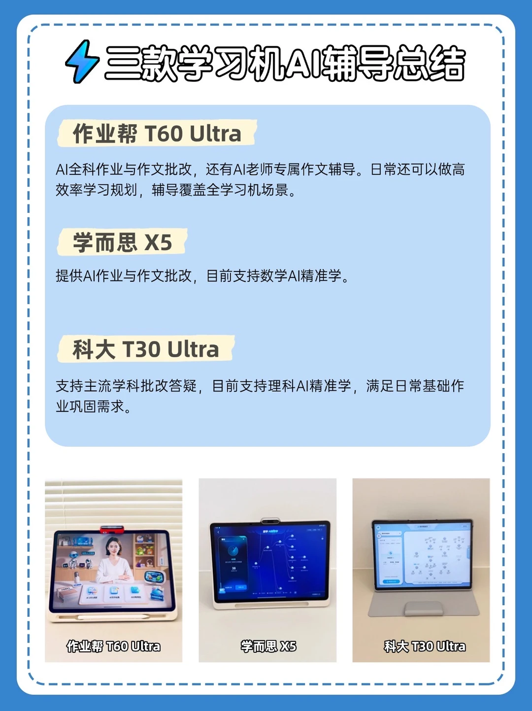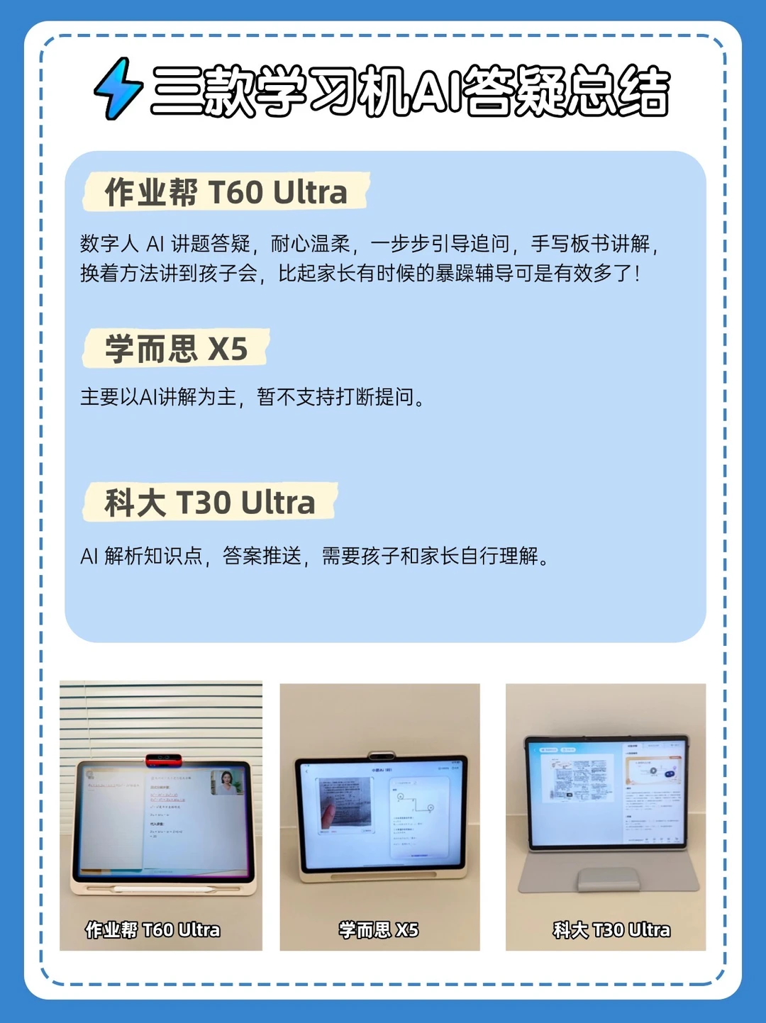 今天直接上作业帮 AI学习机T60 Ultra、科大 T30 Pro、学而思 X5硬核对比📝看完这篇,闭眼选都不踩坑!