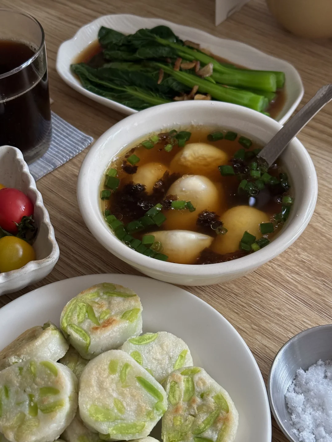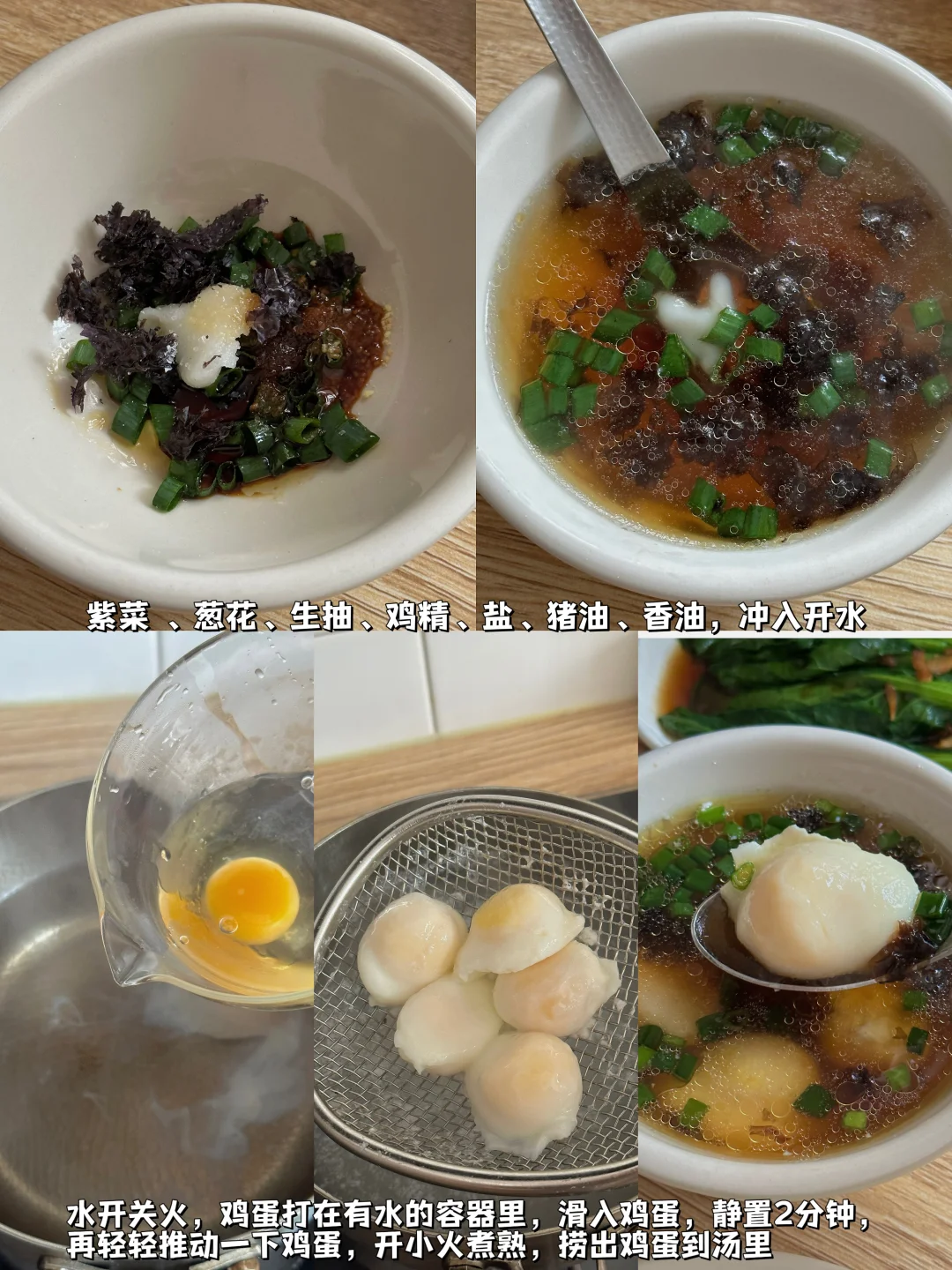 今天的鸡蛋很小很小的,所以一碗有五个,简单的汤底调一下,早上来一碗暖乎乎的!