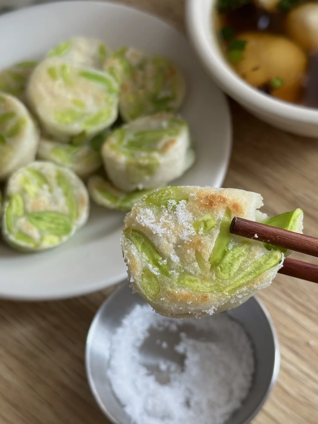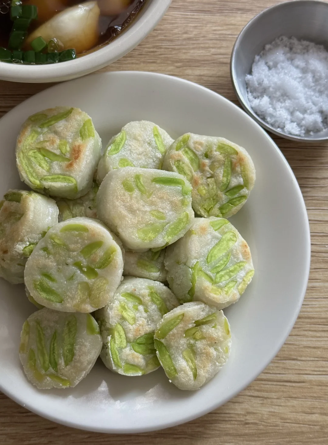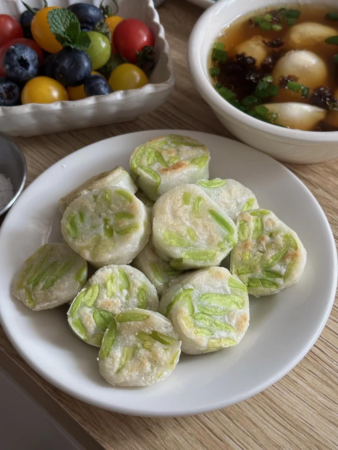 春天少不了绿油油的食材,蚕豆上市了,今天早餐就做了这款蚕豆糯米饼,简单又好吃!