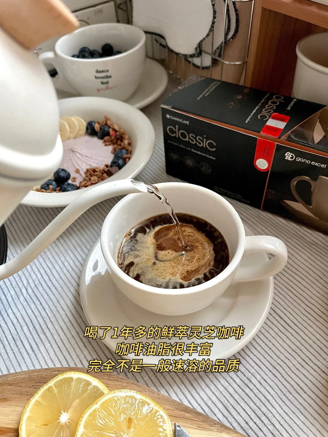 另外午餐前会喝一包灵芝咖啡☕️