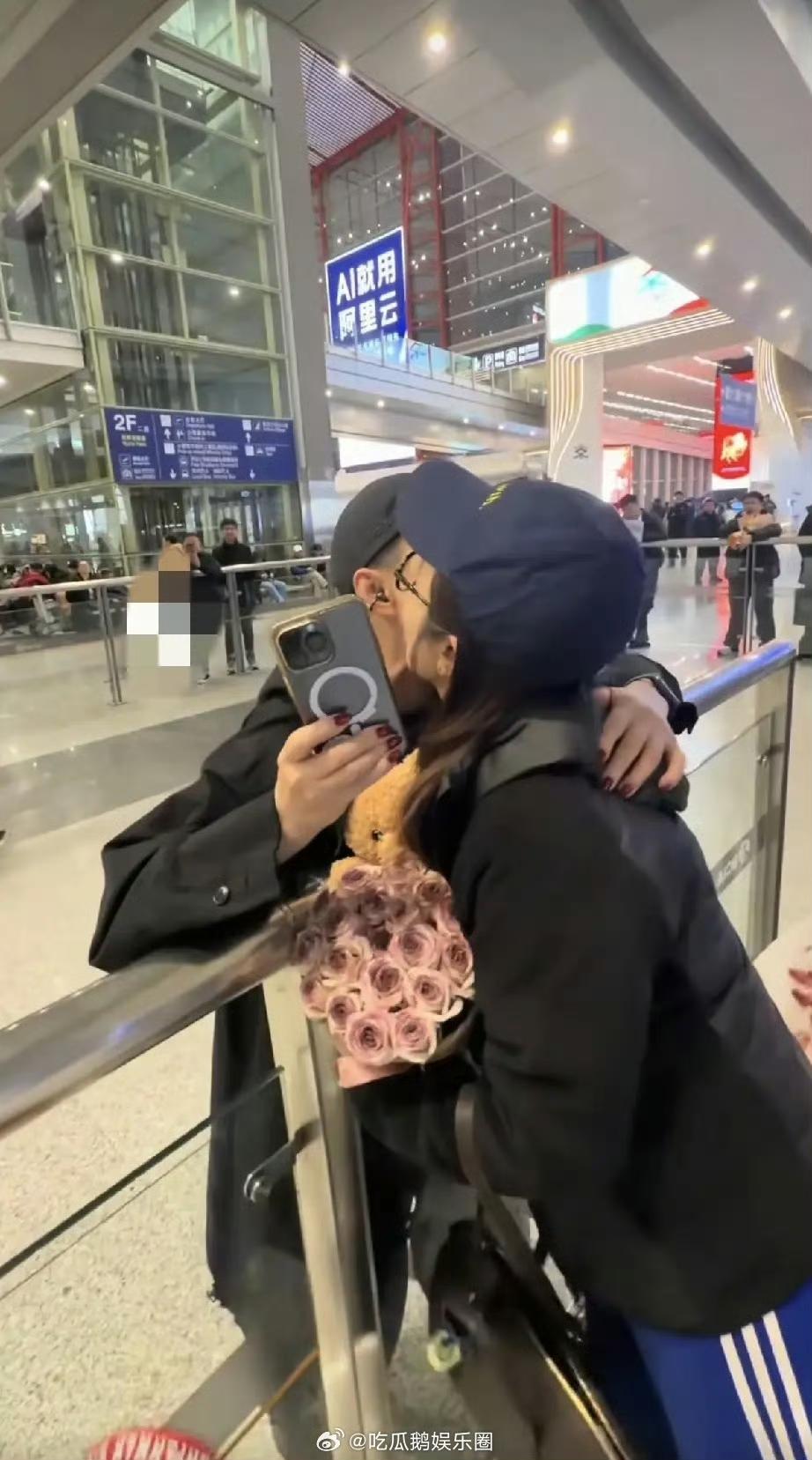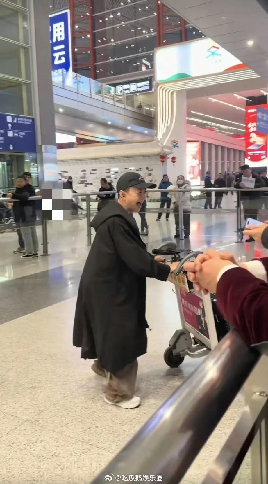 宋丹丹从拉斯维加斯回国做美甲,嘴是扁的,与儿媳妇拥吻,从外国旅游回到北京机场,之