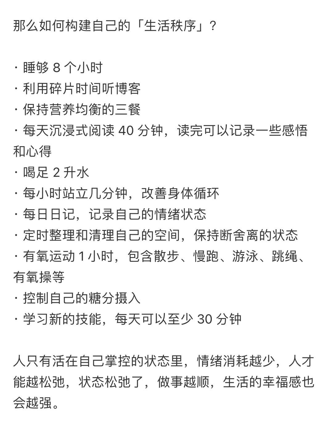 建议大家尽量去过规律而有节制的生活