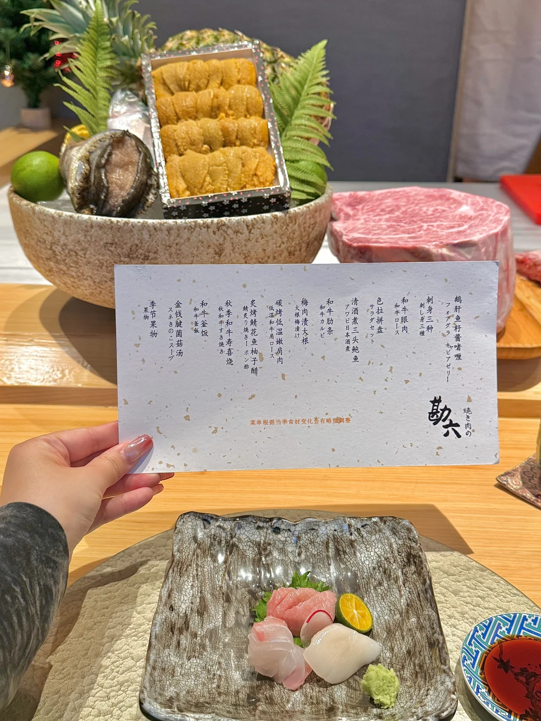 女神节和姐妹们聚餐👯♀️必须选一家环境好味道好的! 外滩二十二号这家烧肉真的jue了! omasake的形式,不仅菜单丰富,而且每道都是可圈可点,食材尤为新鲜!! 和牛烧肉🥩是我吃下来ZUI难忘的,和牛肉眼、和牛肋条、嫩牛肩…三款主打的部位,吃起来有爆汁的口感!牛肉香嫩、油脂丰富、回味带着奶香🥛 除此,还有刺身、鹅肝、鲍鱼、寿喜烧、和牛釜饭…每一道都是进行搭配,记得出的高级感! 就连饭后水果🍓都是鲜甜十足!这一餐吃的特别满意!