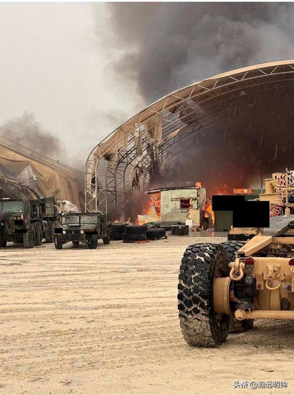 照片展示了伊朗袭击阿联酋境内美国“爱国者”导弹基地后的场景。