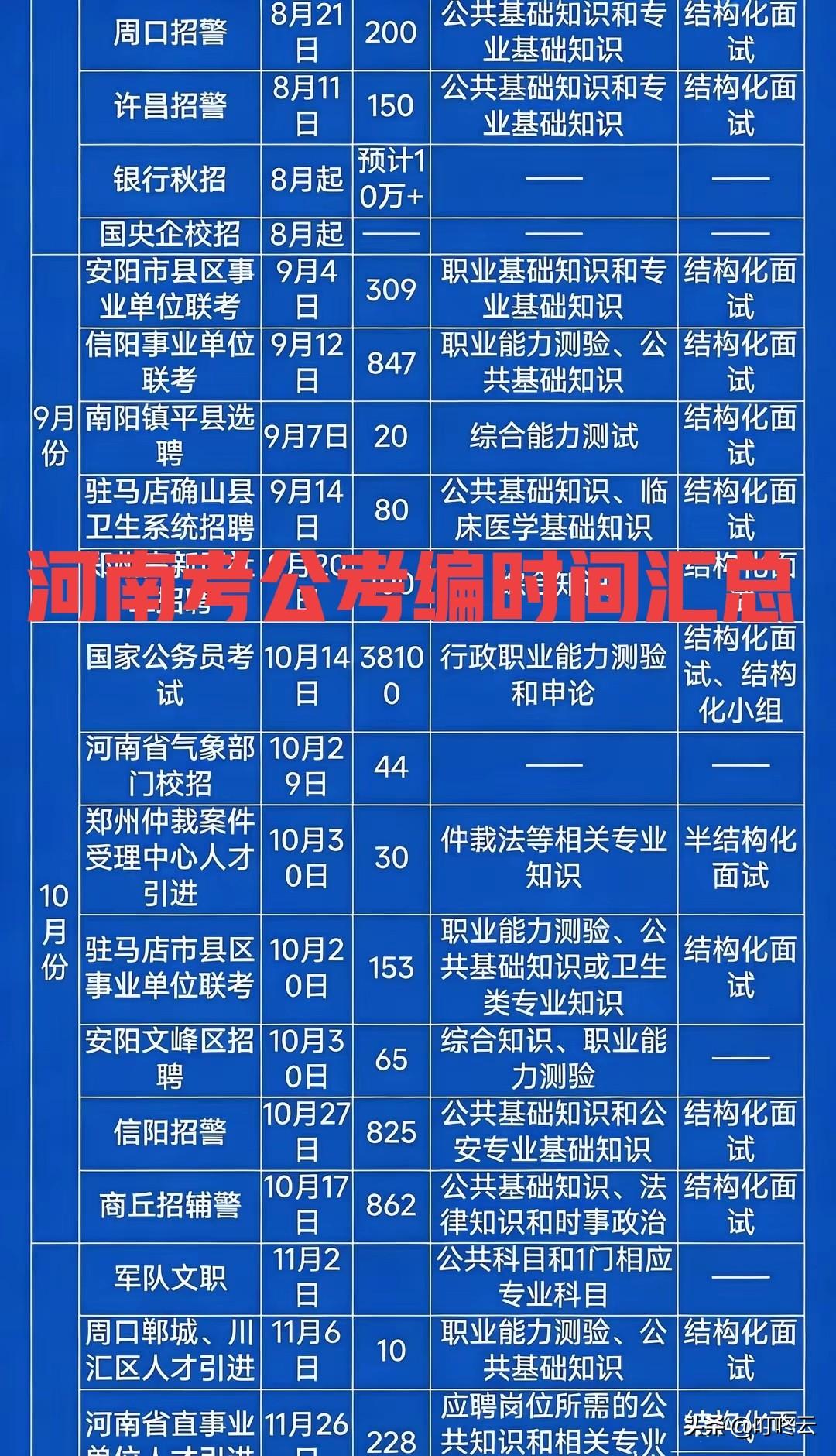夺取铁饭碗,这里有作战计划!河南省2026年考公考编时间安排一览表揭秘!河南考编人:2026年“铁饭碗”时间线,拿捏节奏不迷路!@叮咚云 职业规划指导:2026年河南考编战场,从3月起就火力全开,堪称“全年无休”的金饭碗争夺战。想上岸?先把这份时间线刻进DNA![点亮平安灯][点亮平安灯][福][福] 3月是“开年第一波”,鹤壁浚县、开封尉氏等事业单位率先吹响号角,国家粮食和物资储备局更是放出903个岗位,堪称“开年王炸”。这波主打一个“抢跑”,适合想快速上岸的同学,毕竟“早起的鸟儿有虫吃”。 8-9月是“秋招黄金档”,银行秋招预计放出10万+岗位,安阳、信阳事业单位联考也接踵而至,招警考试更是动辄数百人规模。这时候就得“广撒网”,毕竟“东方不亮西方亮”。 10-11月则是“压轴大戏”,国考、军队文职、省直事业单位人才引进轮番上阵,岗位含金量拉满。这时候拼的就是“厚积薄发”,毕竟“行百里者半九十”。 记住,考编不是孤军奋战,而是一场精准的时间管理游戏。按图索骥,提前布局,才能在千军万马中突出重围,捧回属于自己的“铁饭碗”![大笑][大笑] 欢迎关注@叮咚云 就业择业指导,帮你快速拿到央国企offer!将优先为粉丝职业规划指导,为你定制最适合的就业择业方案!欢迎留言交流讨论。[来看我][来看我] 免责声明:图片来自网络,仅供参考 考公考编时间表 河南基层公考 许昌考公考编 三门峡考公考编 河南事业单位考