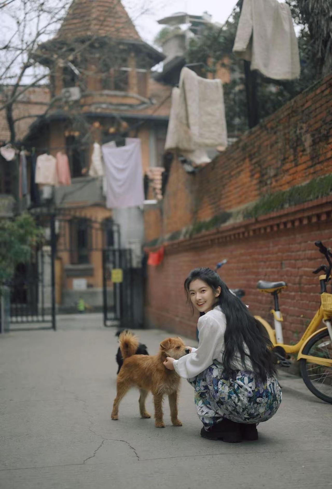 在老街的巷子里,与小狗的温馨时光🐾💕爱狗的美女,与动物的和谐相处,狗是人类最好的朋友之一美女带狗散步 美女宠物合照 遛狗照 遛狗写真 爱狗人士