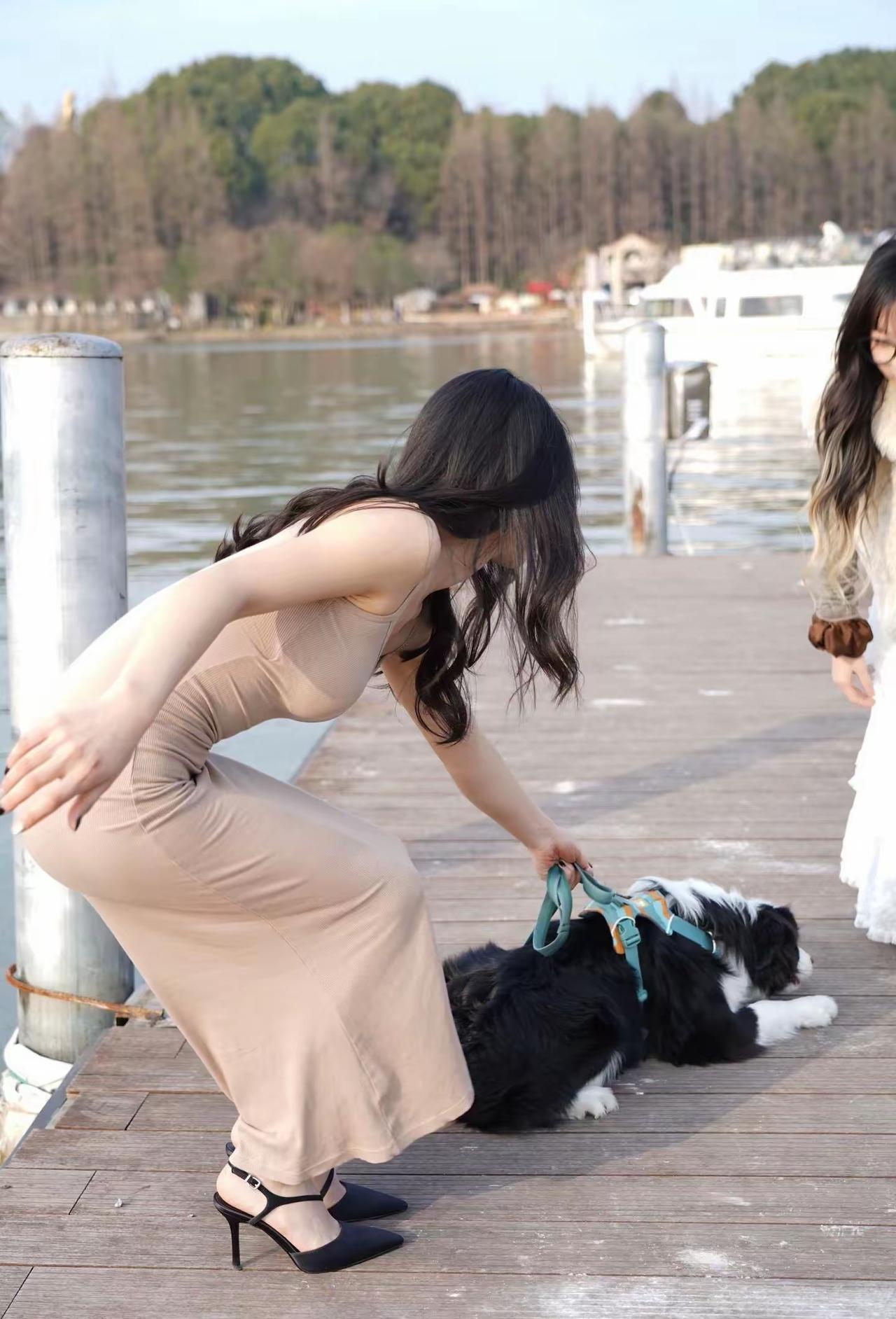 在老街的巷子里,与小狗的温馨时光🐾💕爱狗的美女,与动物的和谐相处,狗是人类最