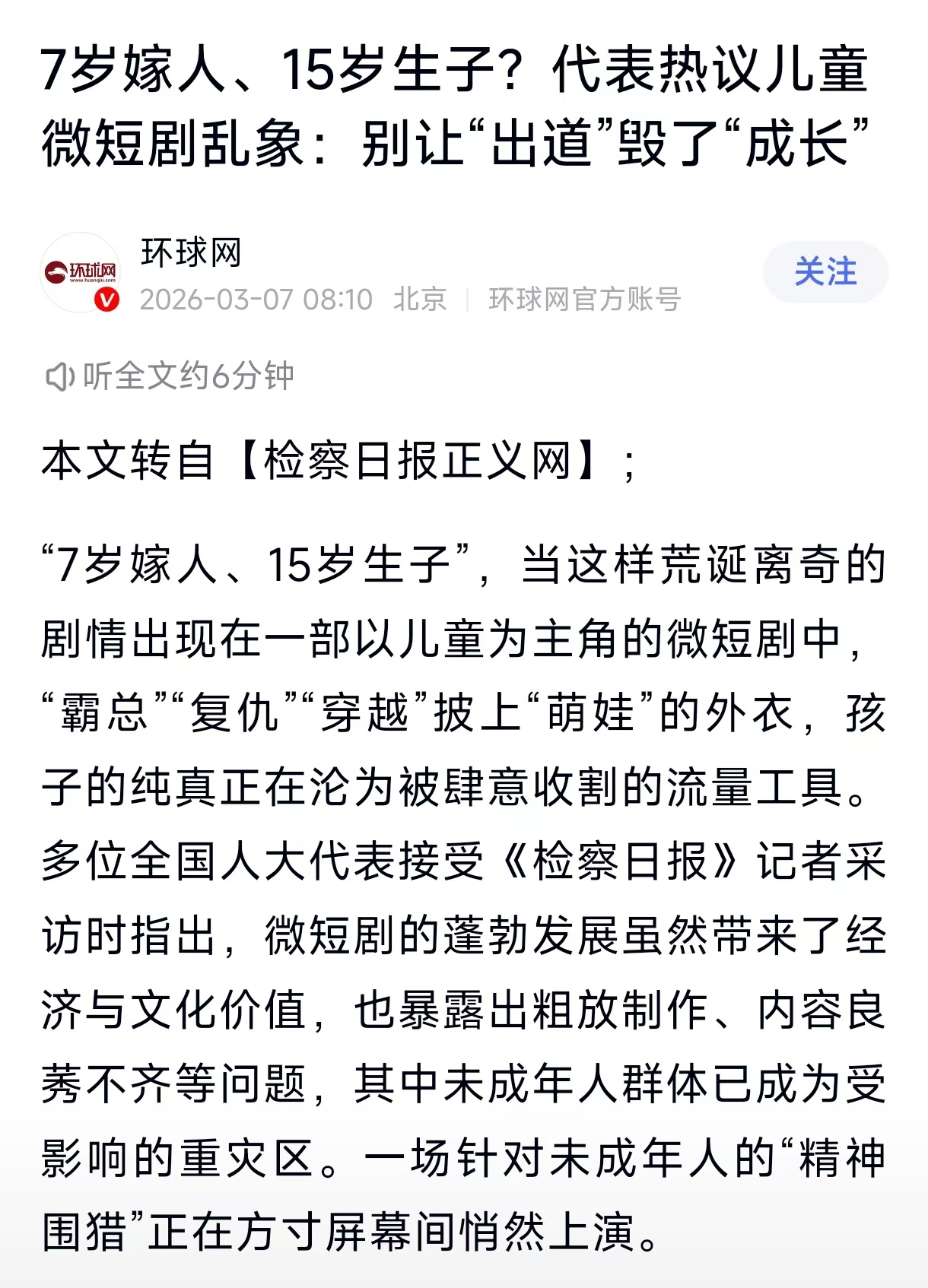 100部微短剧中精品剧仅有不到2部微短剧迎来蓬勃发展期,既有机遇也有挑战。不盲目追求数量,更要深耕内容质量,以监管护航、以责任立身,让优质作品成为主流,传递正向价值。 别让劣质微短剧毁了青少年三观