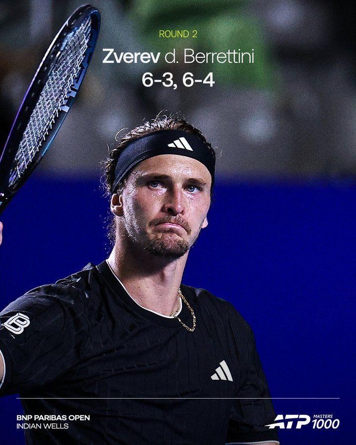 网坛风云 印第安维尔斯赛,6-1/6-1横扫资格赛球员斯夫尔奇纳;兹维列夫6-3/6-4淘汰了贝雷蒂尼。
