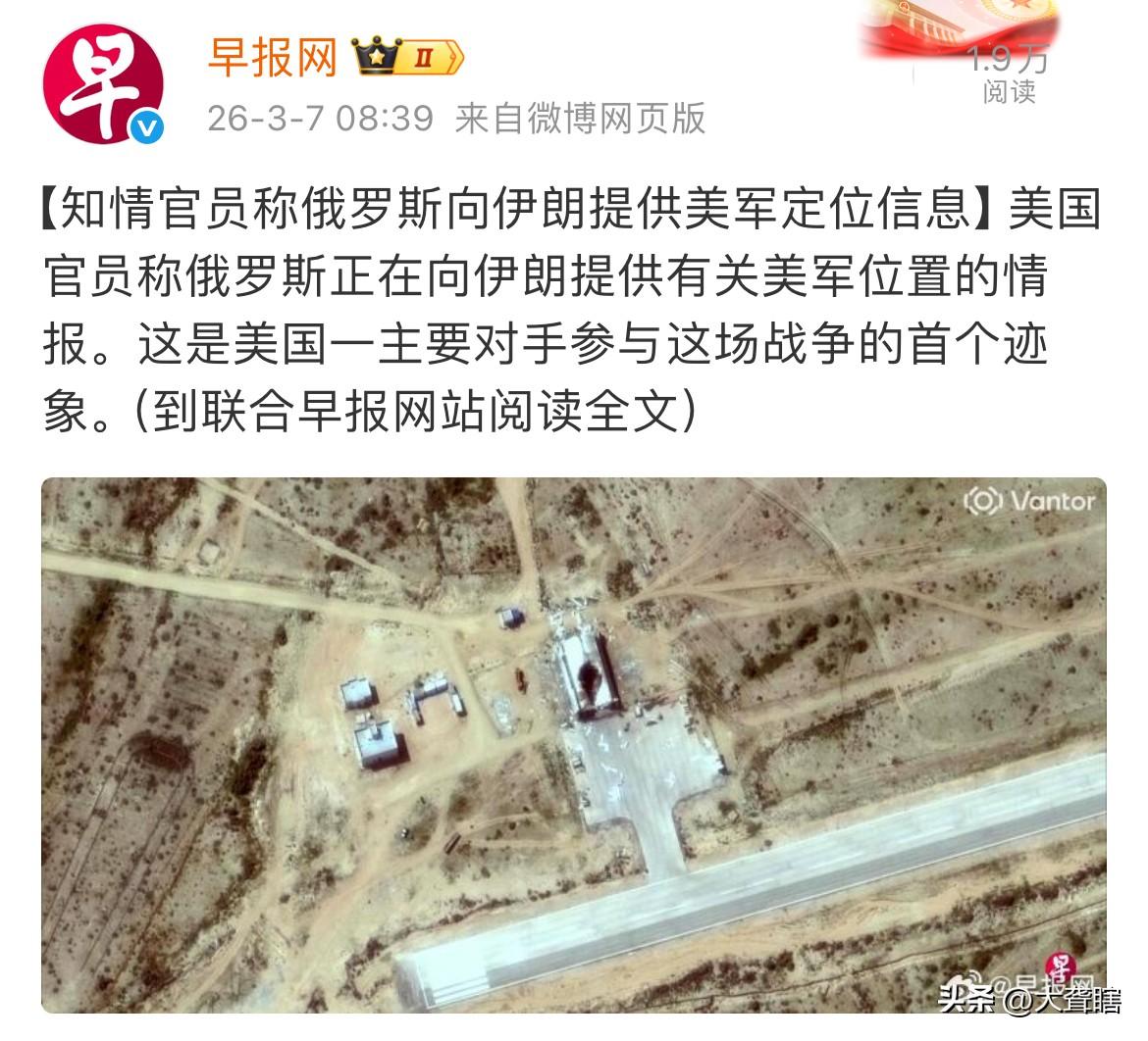 美国称俄罗斯向伊朗提供情报! 据新加坡《早报网》消息,美国的一个主要对手参与了美以和伊朗的这一边战争。 消息称,有美国官员称俄罗斯向伊朗通报了美军军事目标的具体位置,认定俄罗斯为伊朗提供情报支持。