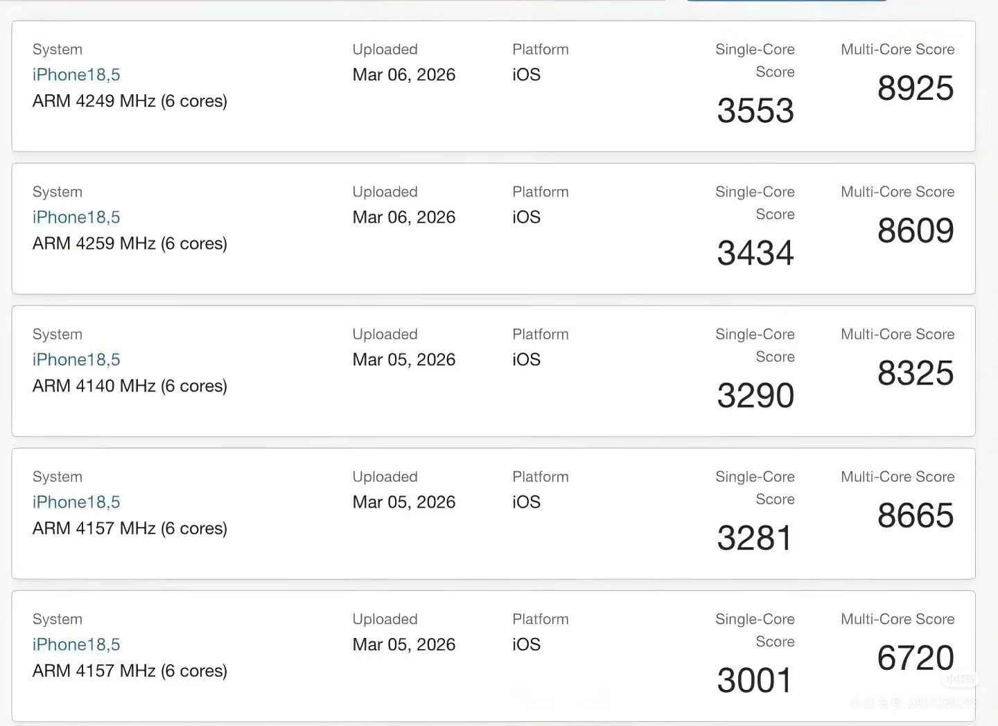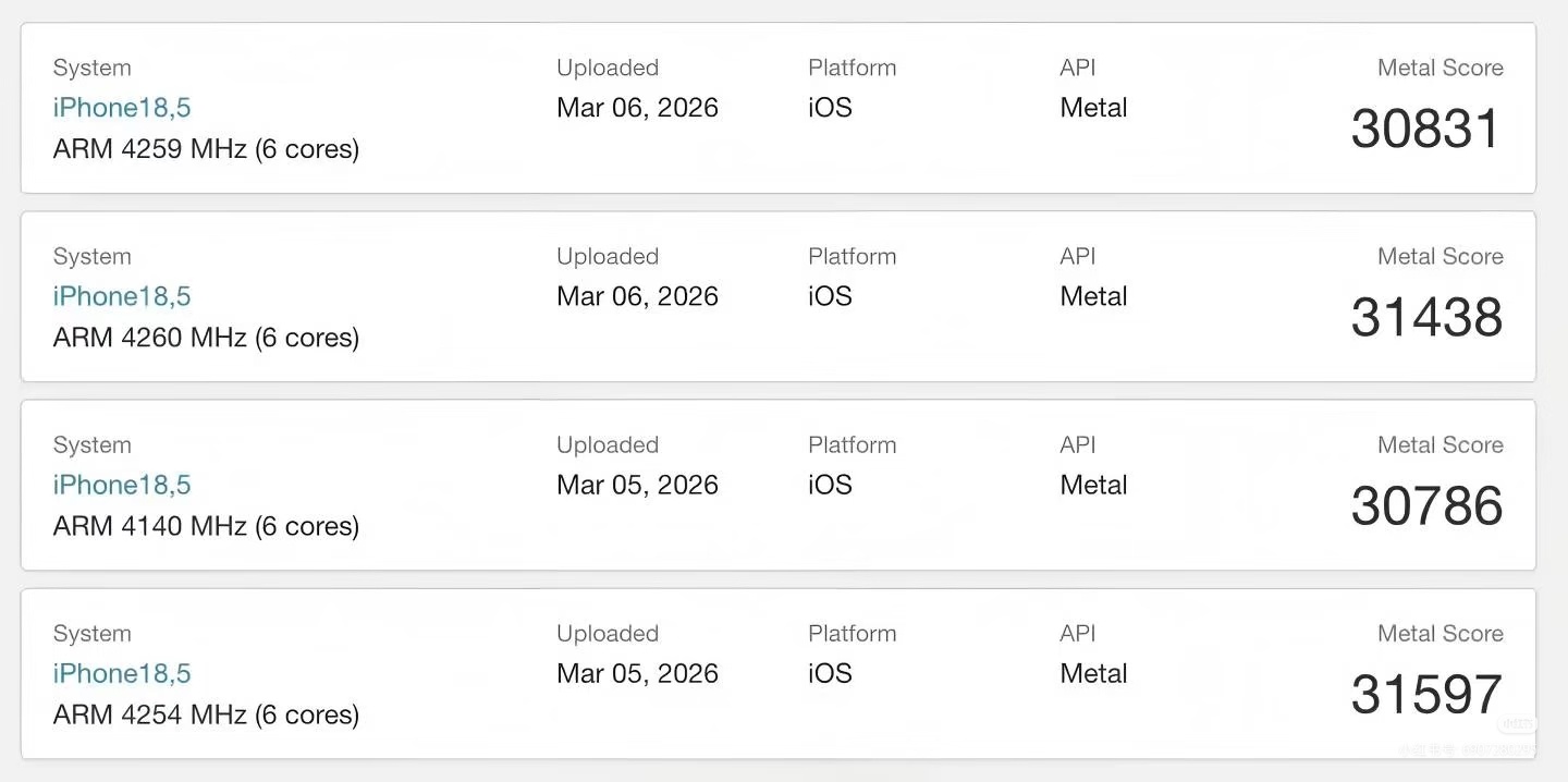 iPhone17e跑分出炉CPU和17标准版差不多一致,GPU性能低于标准版且有