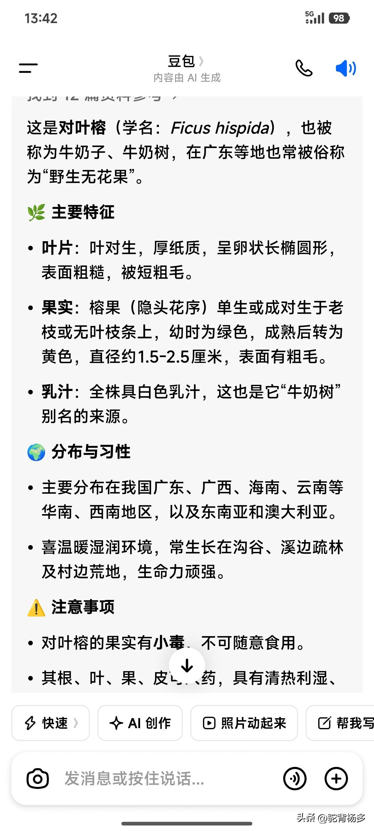 豆包帮助下,终于知道这棵树叫“牛奶树”,也知道这果子有毒不能食。